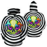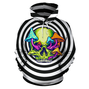 Black & White Psychedelic Design Skull with Mushrooms Two Hoodie