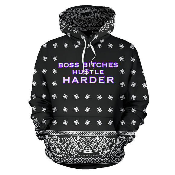 Boss bitches hu$tle harder. Bandana Black & White Style Hoodie