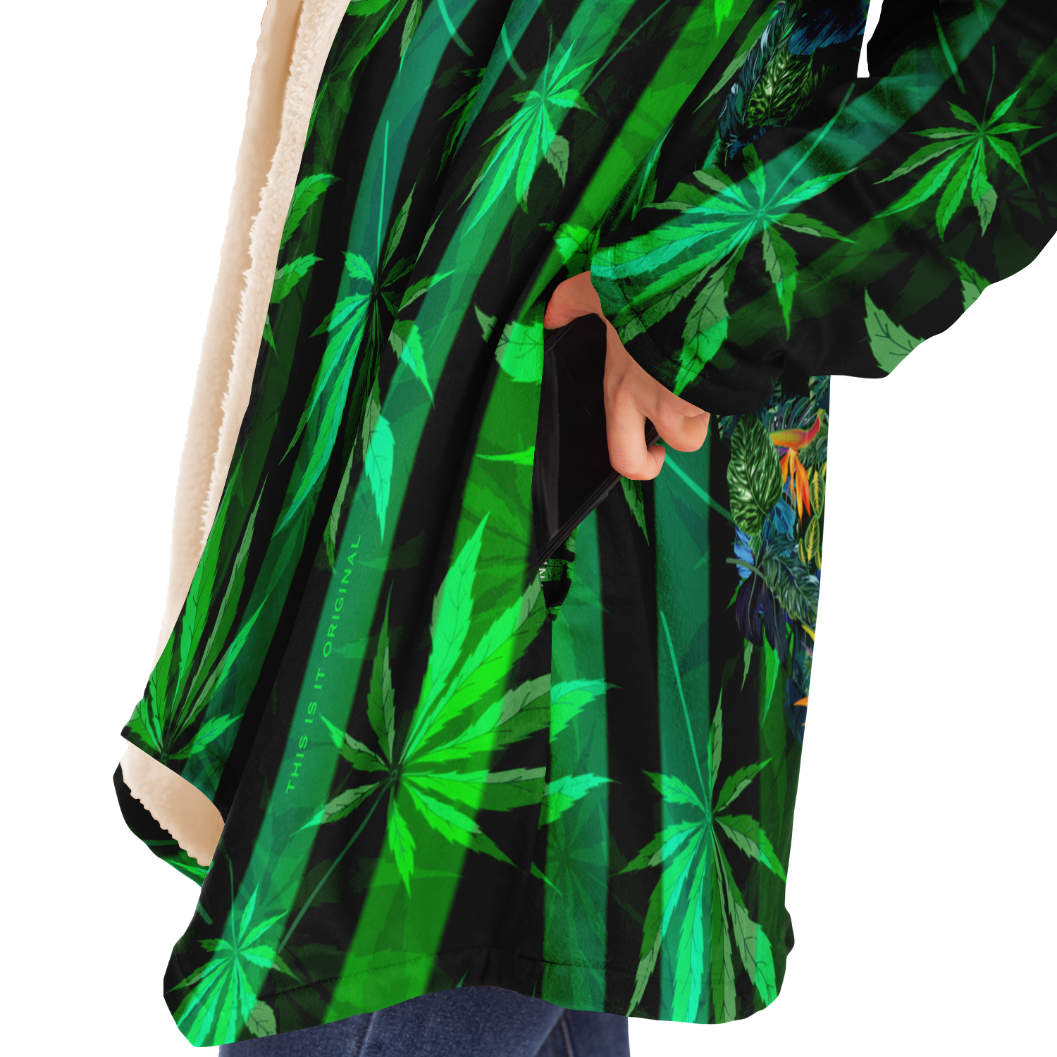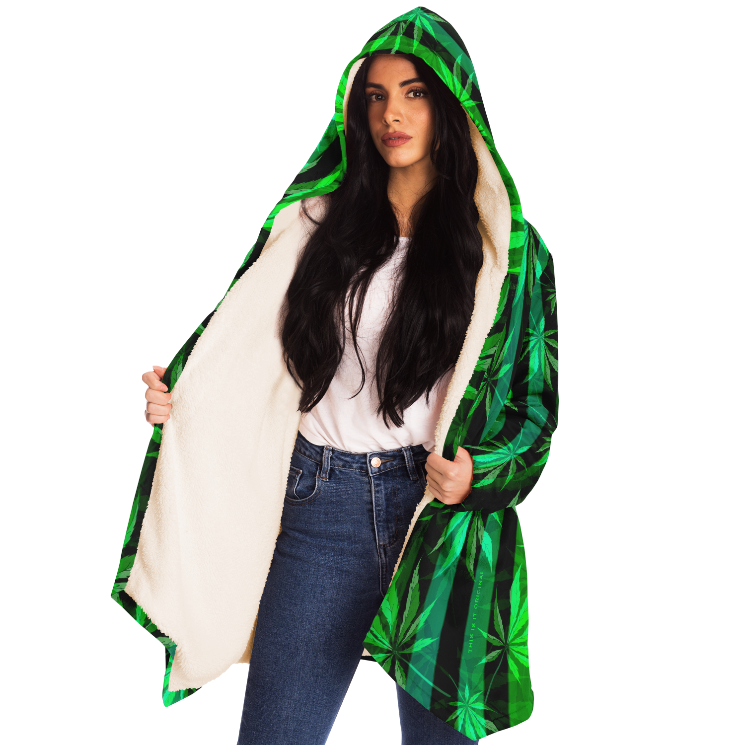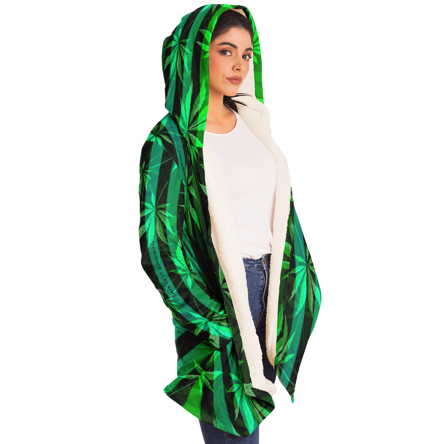 This luxurious cloak is made from an ultra-soft premium microfiber fleece lining. The outside is made with a micro-mink polyester fabric that allows the print to be high definition with vibrant colors. Featuring two deep side pockets to keep your belongings safe and your hands warm.