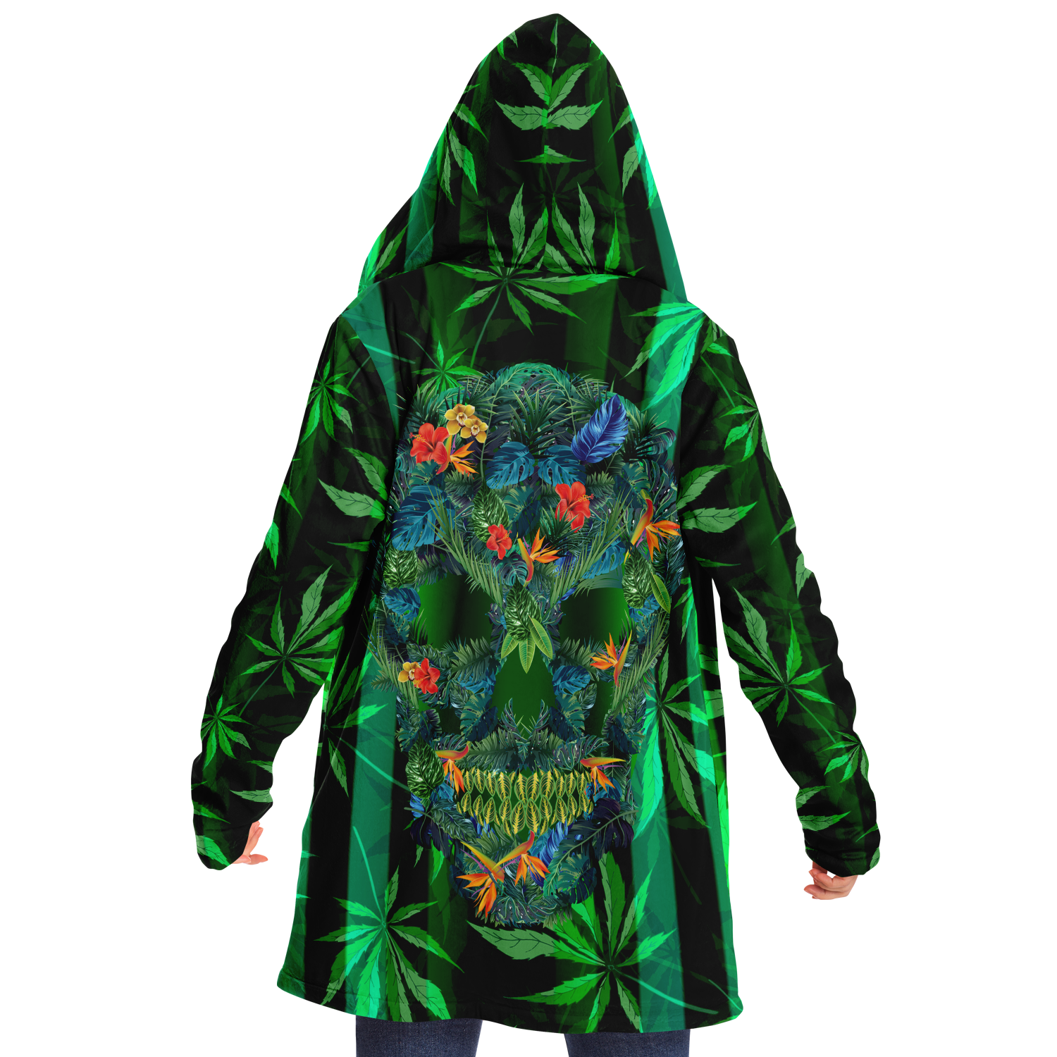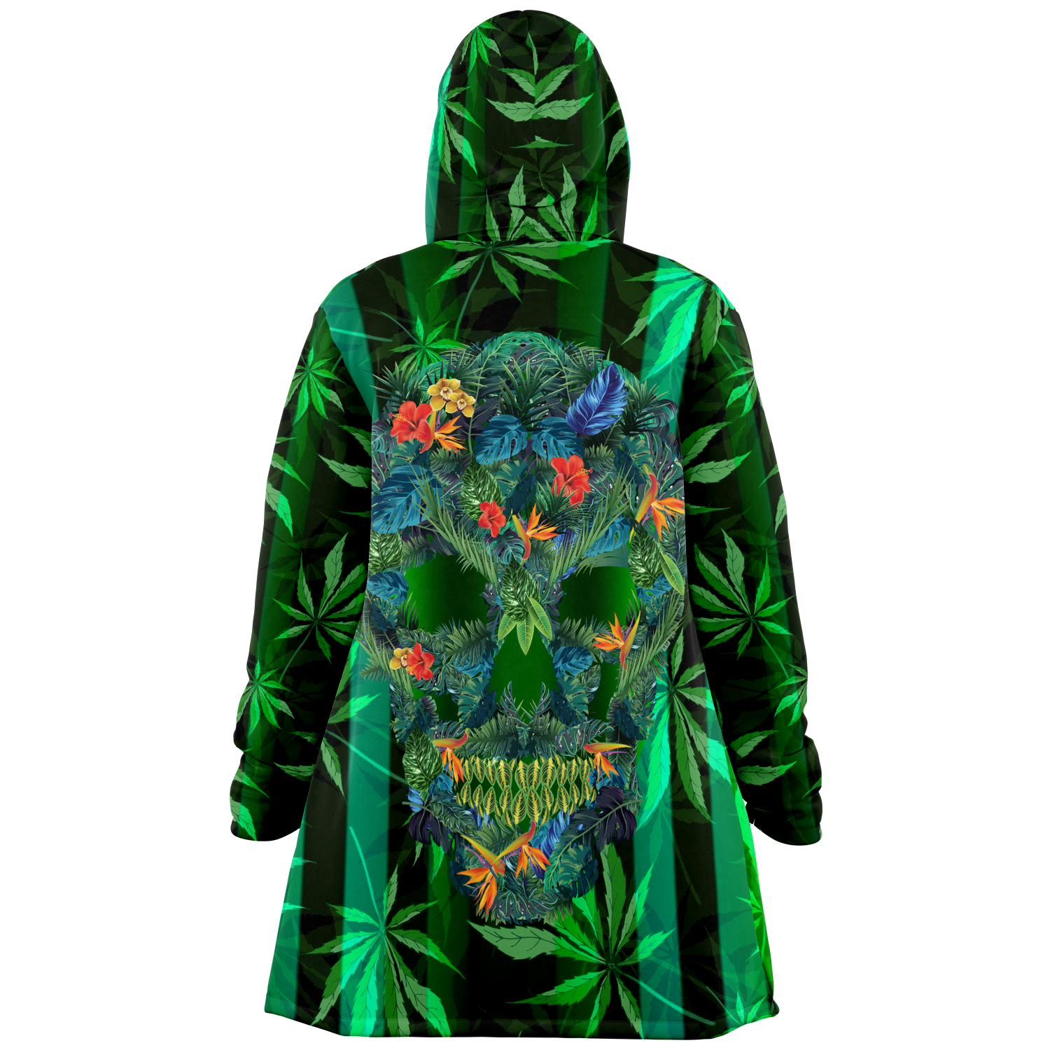 Cannabis design with Neon Stripes Style & Dirty Tropical Flower All over Skull Head Luxury Cloak