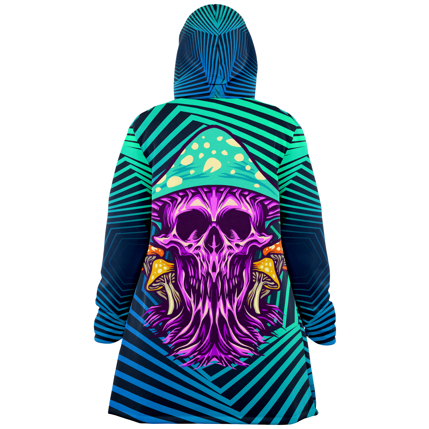 Geometric Explosion Deep Blue & Light Blue with Psychedelic Violet & Mushrooms Skull Cloak