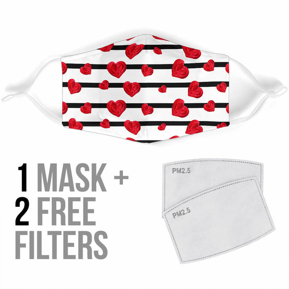 Bestseller Black Stripes With Lovely Red Hearts Protection Face Mask