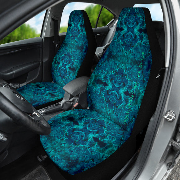 Rave Psychedelic Design With Light Blue Skull & Mushrooms Car Seat Cover