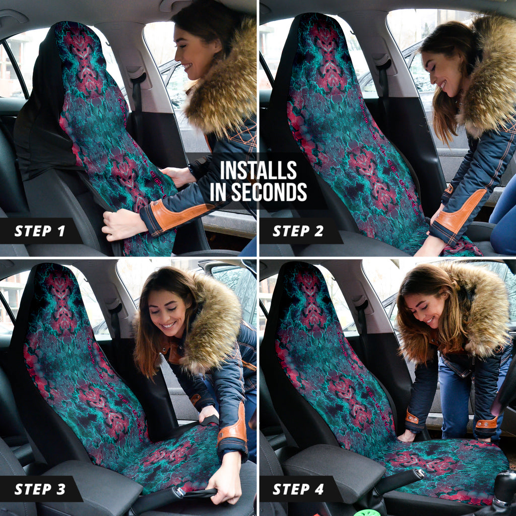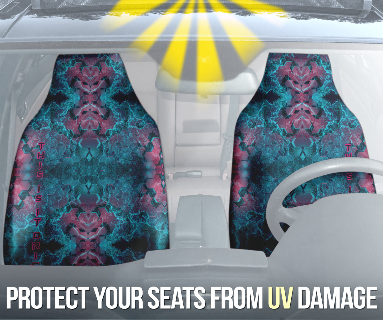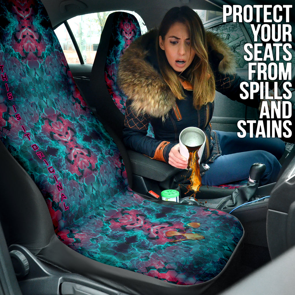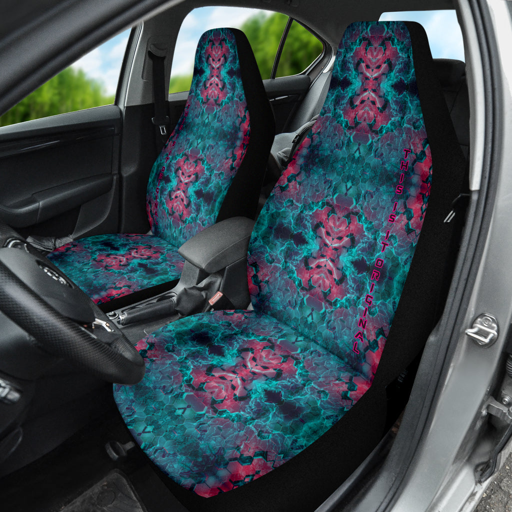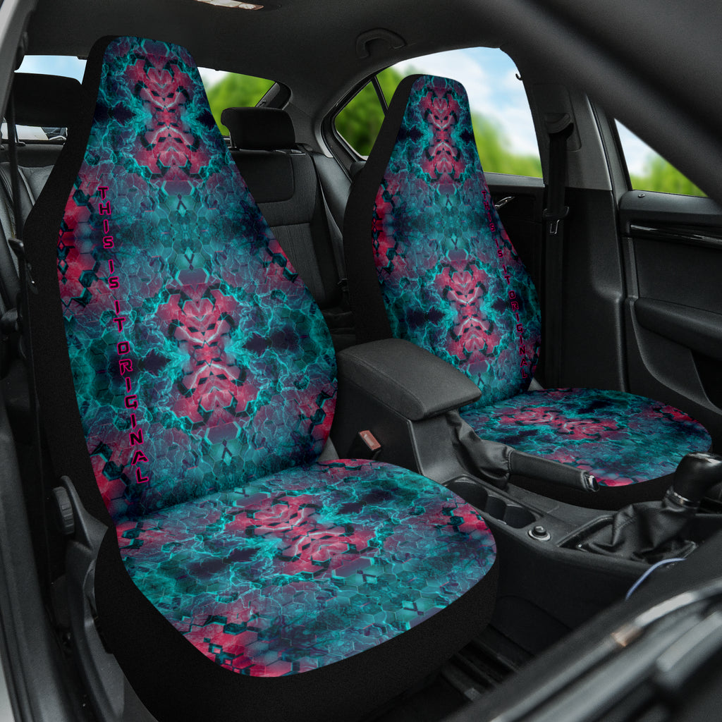Abstract Hexagon Design with Electric Blue and Retro Pink Effects on Car Seat Covers