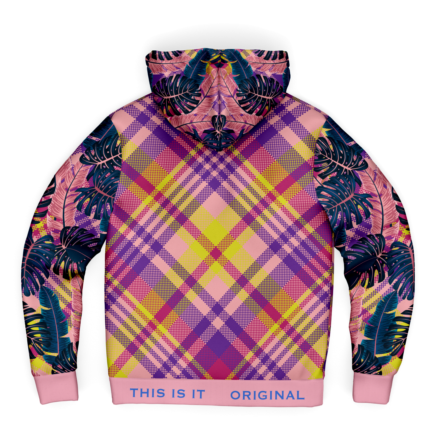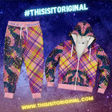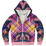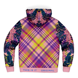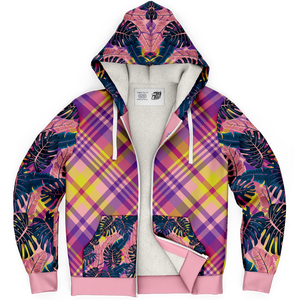 Pink & Grey Tropical Design with Luxury Purple & Yellow Tartan Style Exclusive Micro Fleece Zip Hoodie