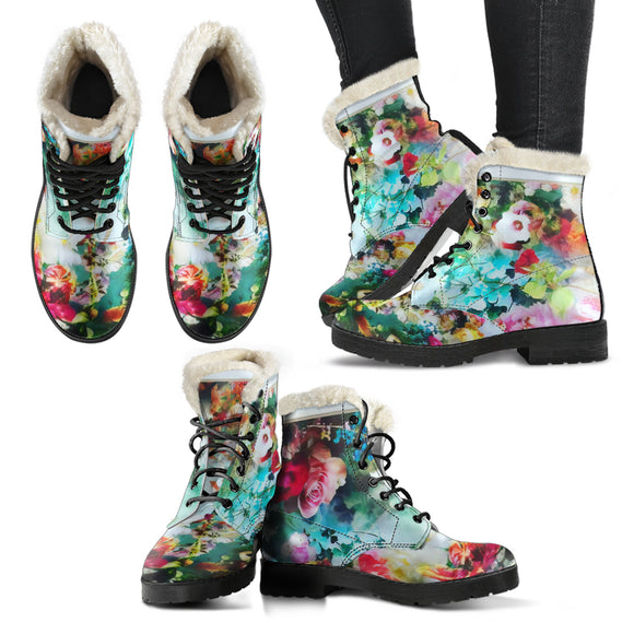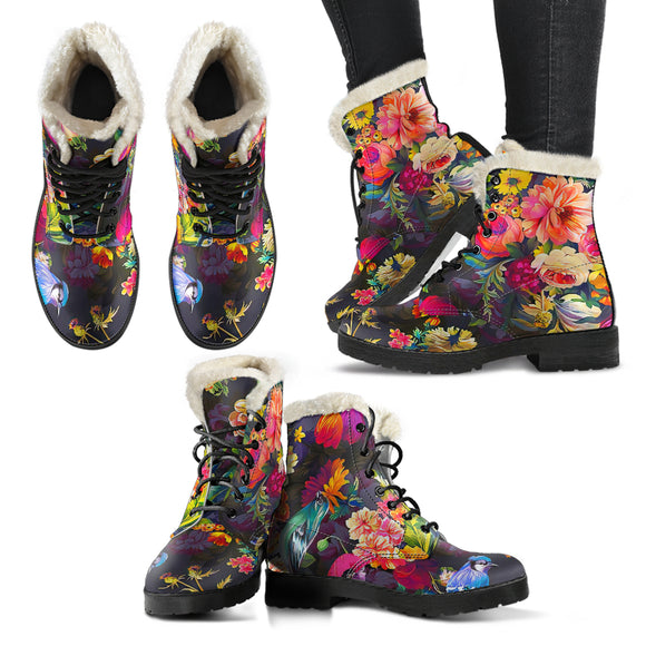 Flowery Lovely Miracle Faux Fur Leather Boots