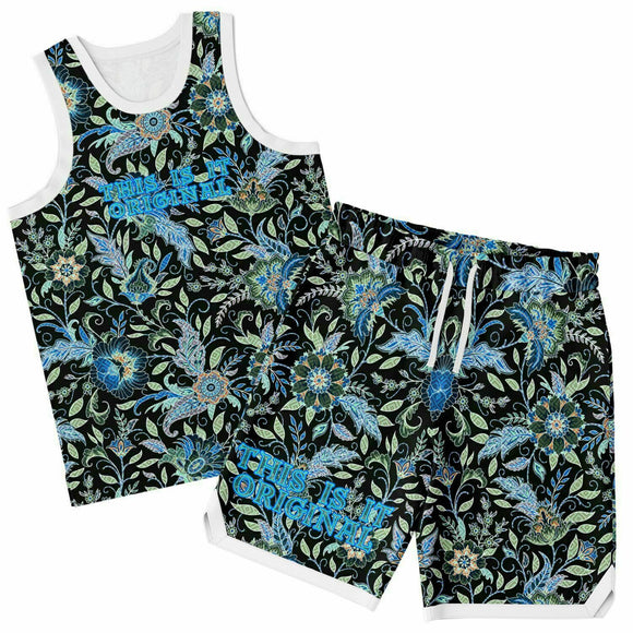 Black and Blue Exotic Floral Pattern Design on Basketball Unisex Jersey & Shorts Set all Black Edition