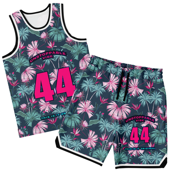 Tropical Palm Tree & Pink Lovely Flower with Pink Vibe Unisex Basketball Set