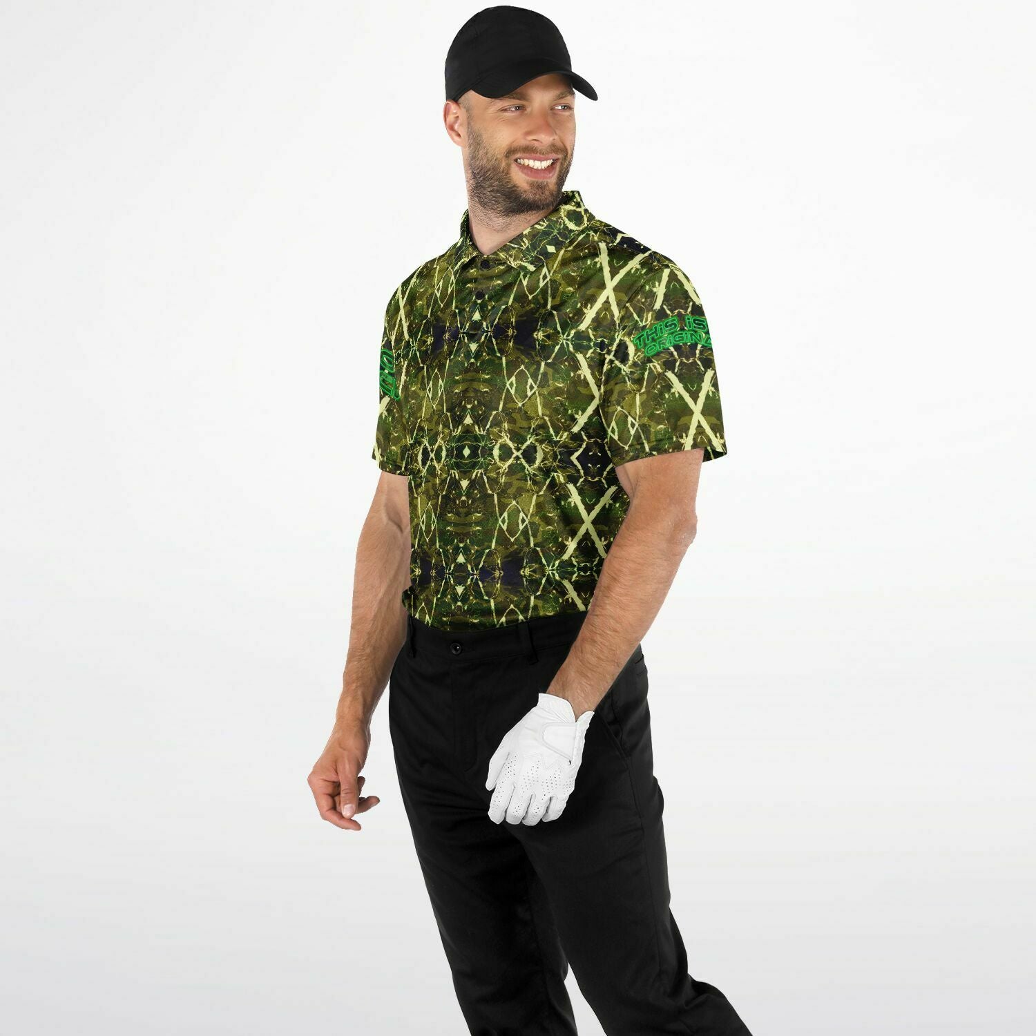 Dark Camouflage Design with Marbled Pattern Exclusive Golf Polo Shirt