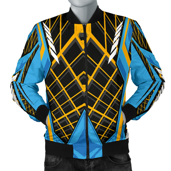 Racing Style Ocean Blue & Yellow & Grey Colorful Vibe Men's Bomber Jacket