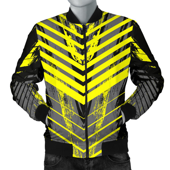 Racing Style Grey & Yellow Stripes Vibes Men's Bomber Jacket