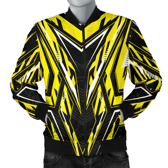 Racing Abstract Style Black & Yellow Vibes Men's Bomber Jacket