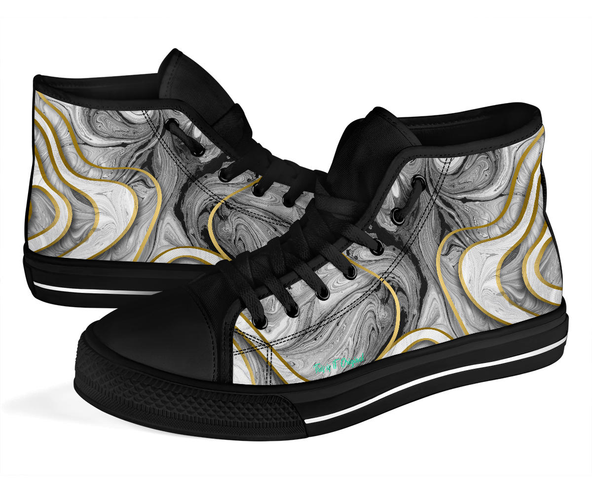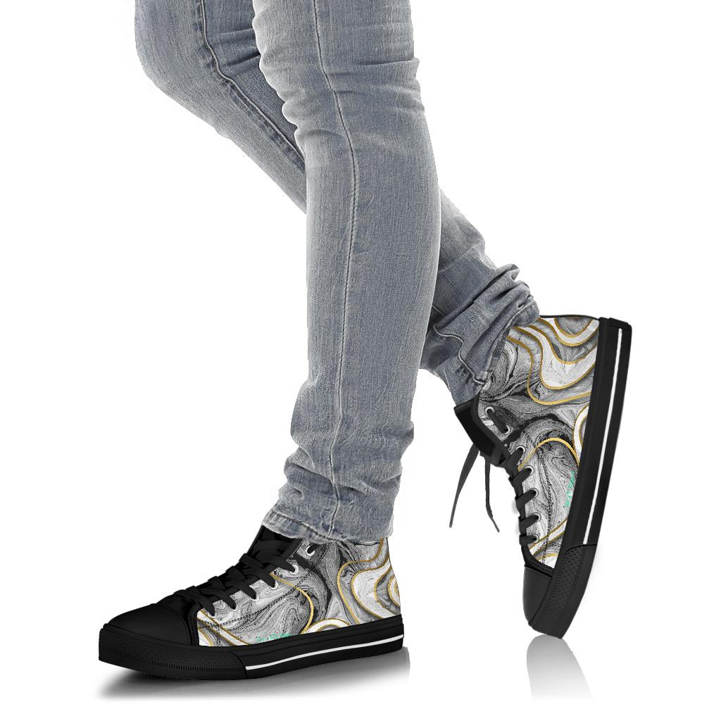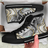 Luxury Marble Grey Design With Gold Stripes High Top Shoe