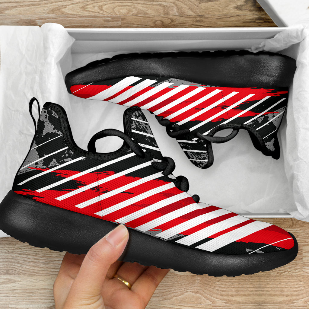 Racing Style Red & White Stripes Vibes Mesh Knit Sneakers