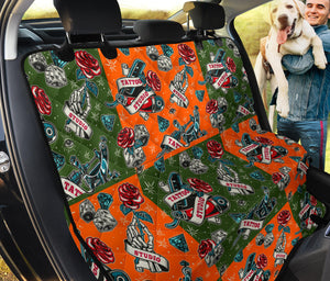 Orange & Dark Green Tattoo Studio Art Design Pet Seat Cover