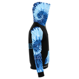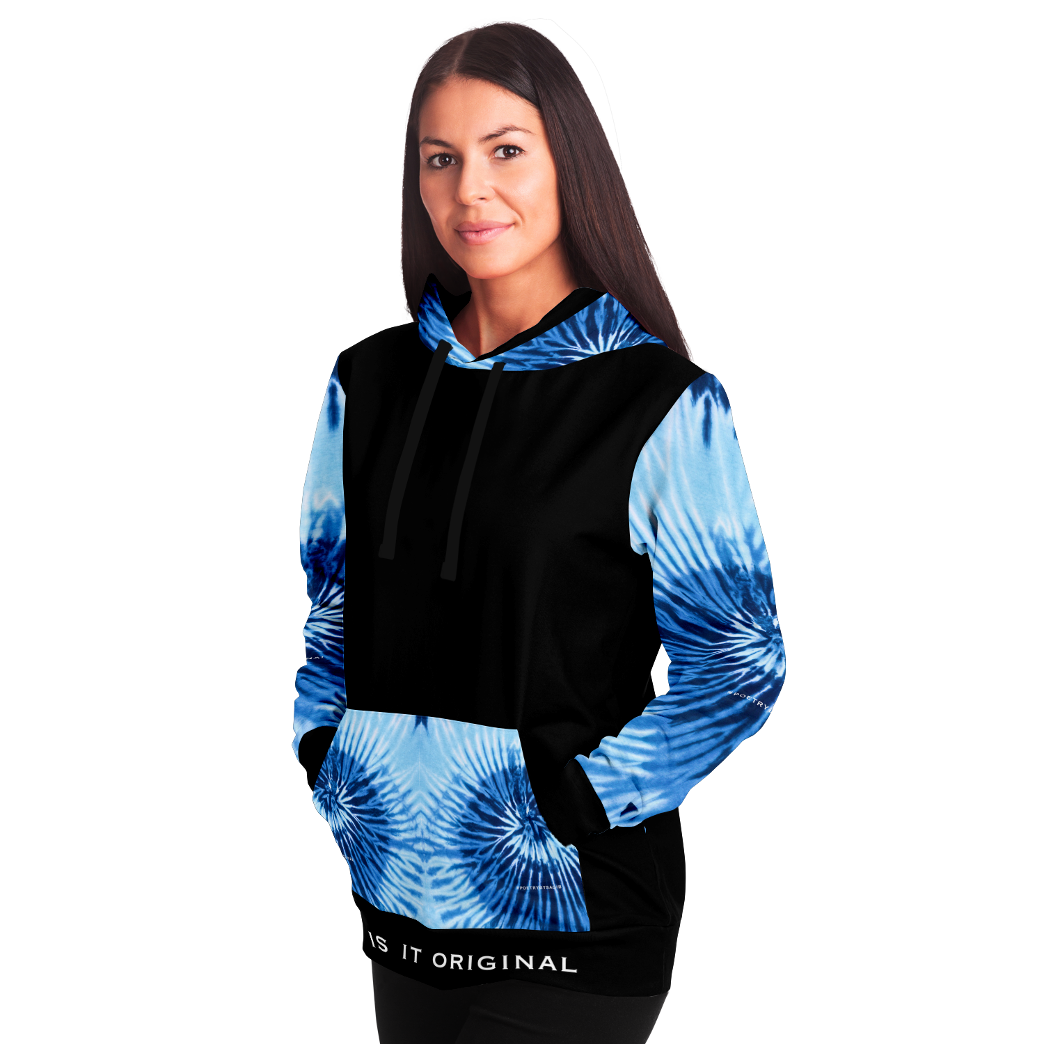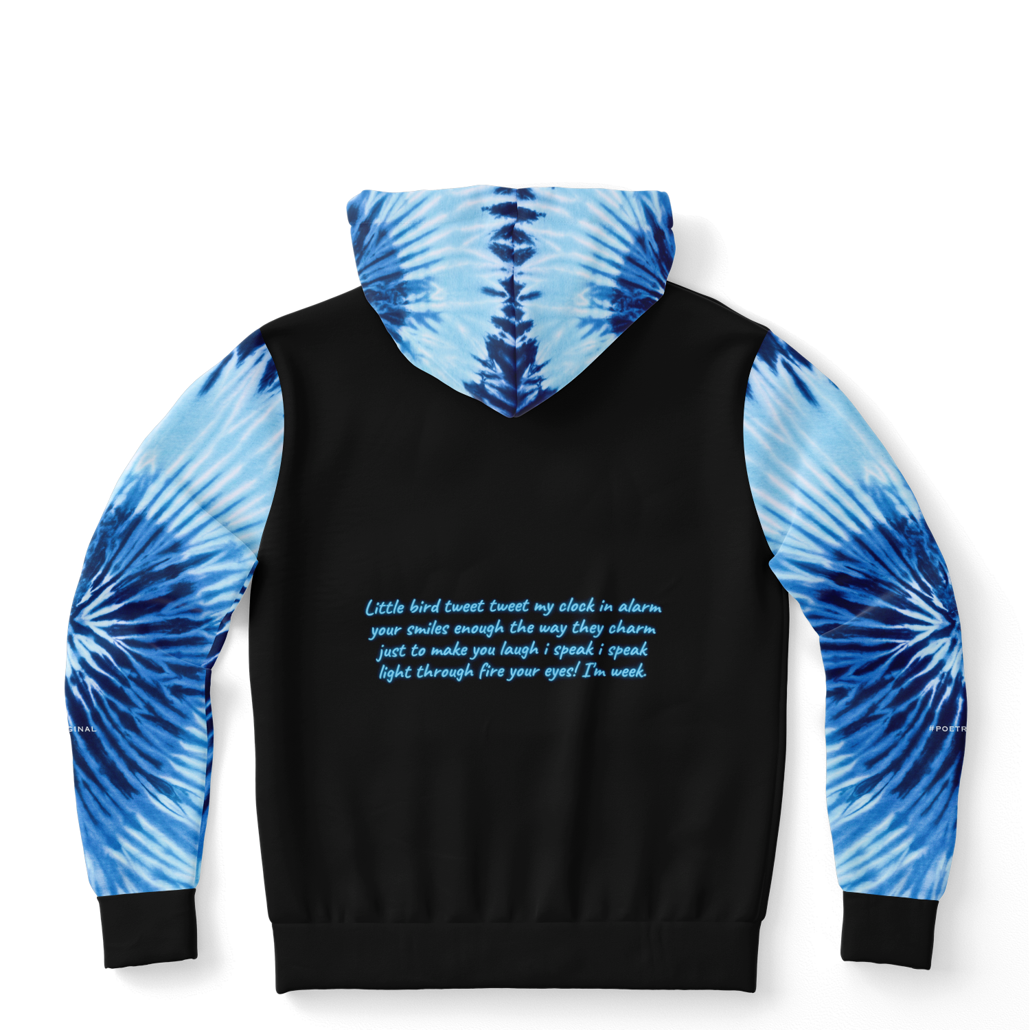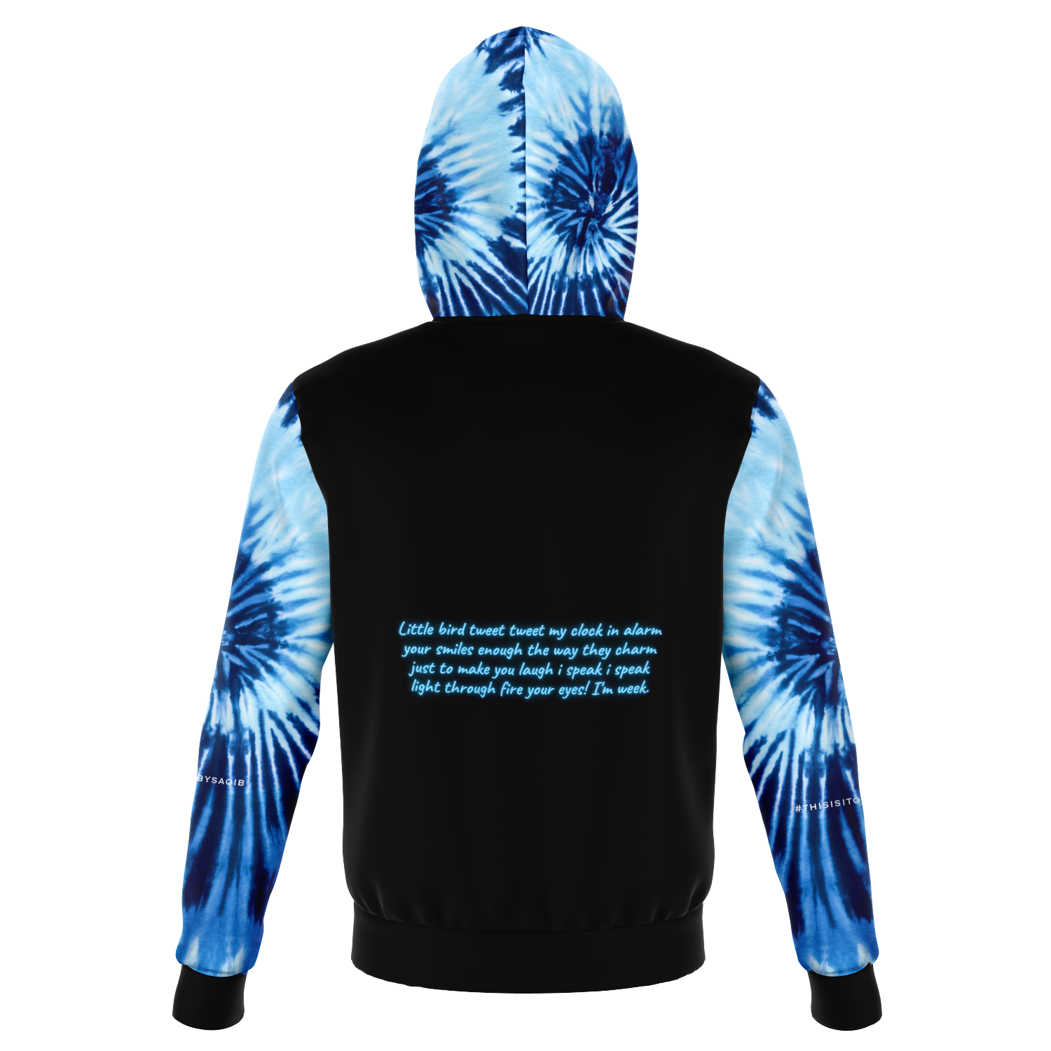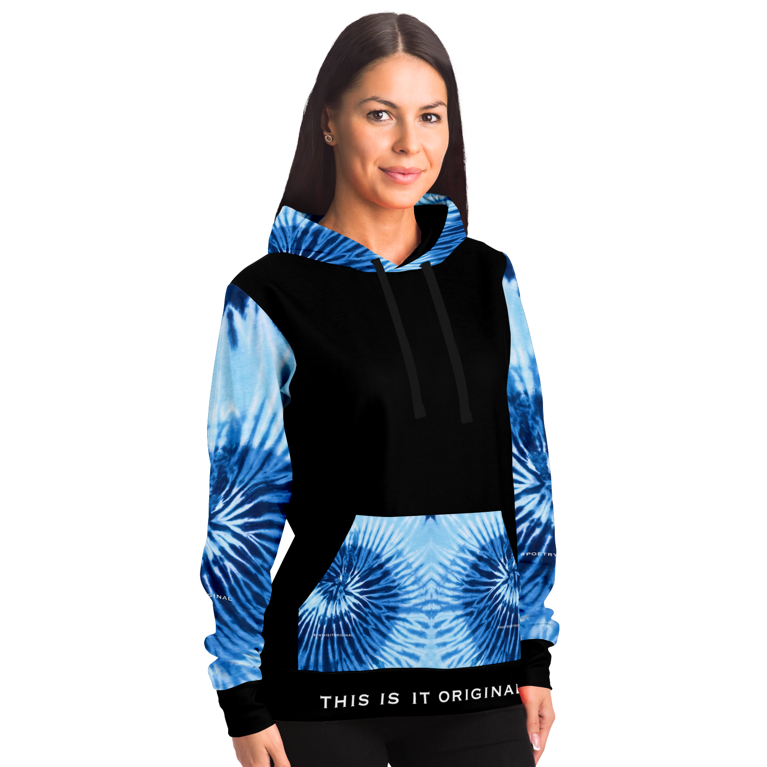 Luxury Poetry on Black with Light Blue & Dark Blue Tie Dye Design Three Fashion Hoodie