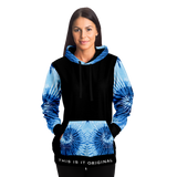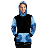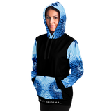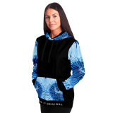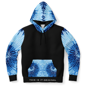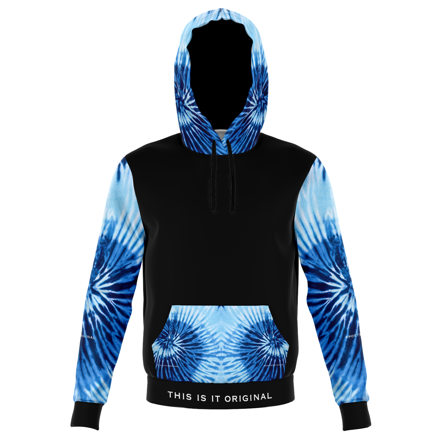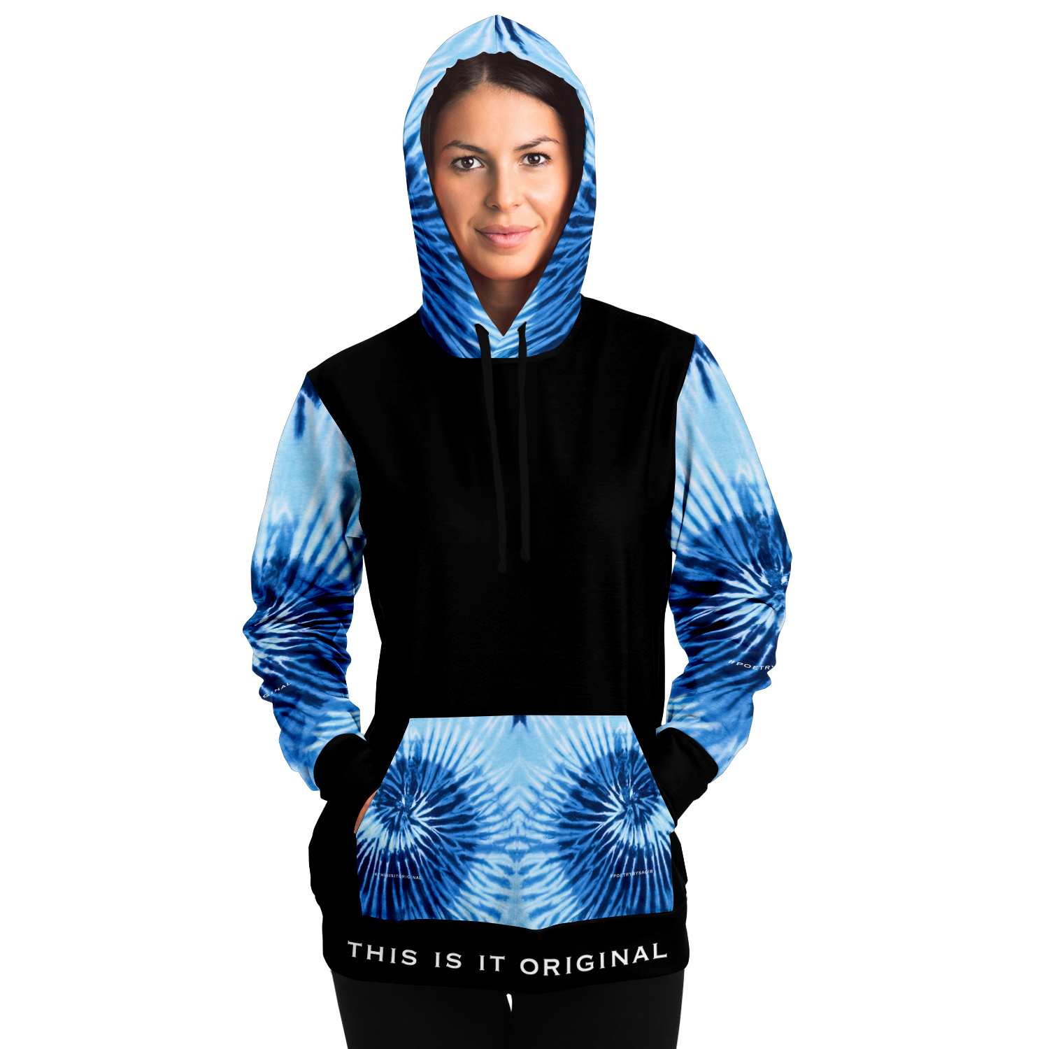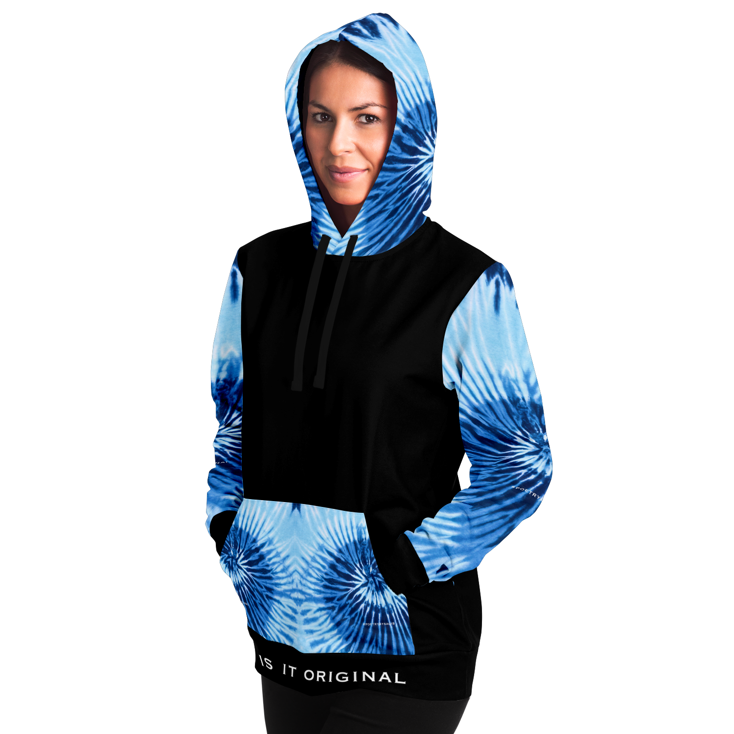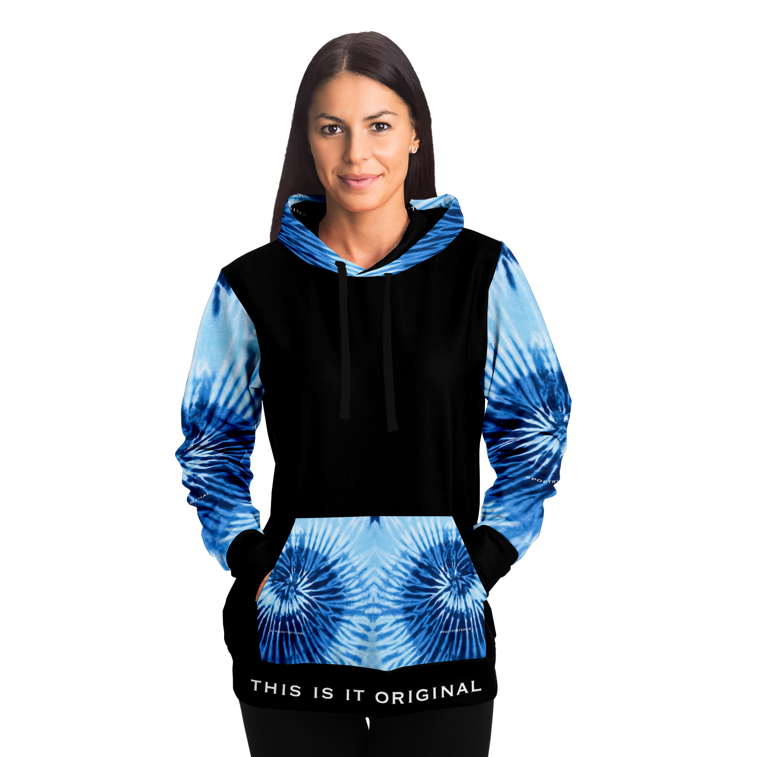 Luxury Poetry on Black with Light Blue & Dark Blue Tie Dye Design Three Fashion Hoodie