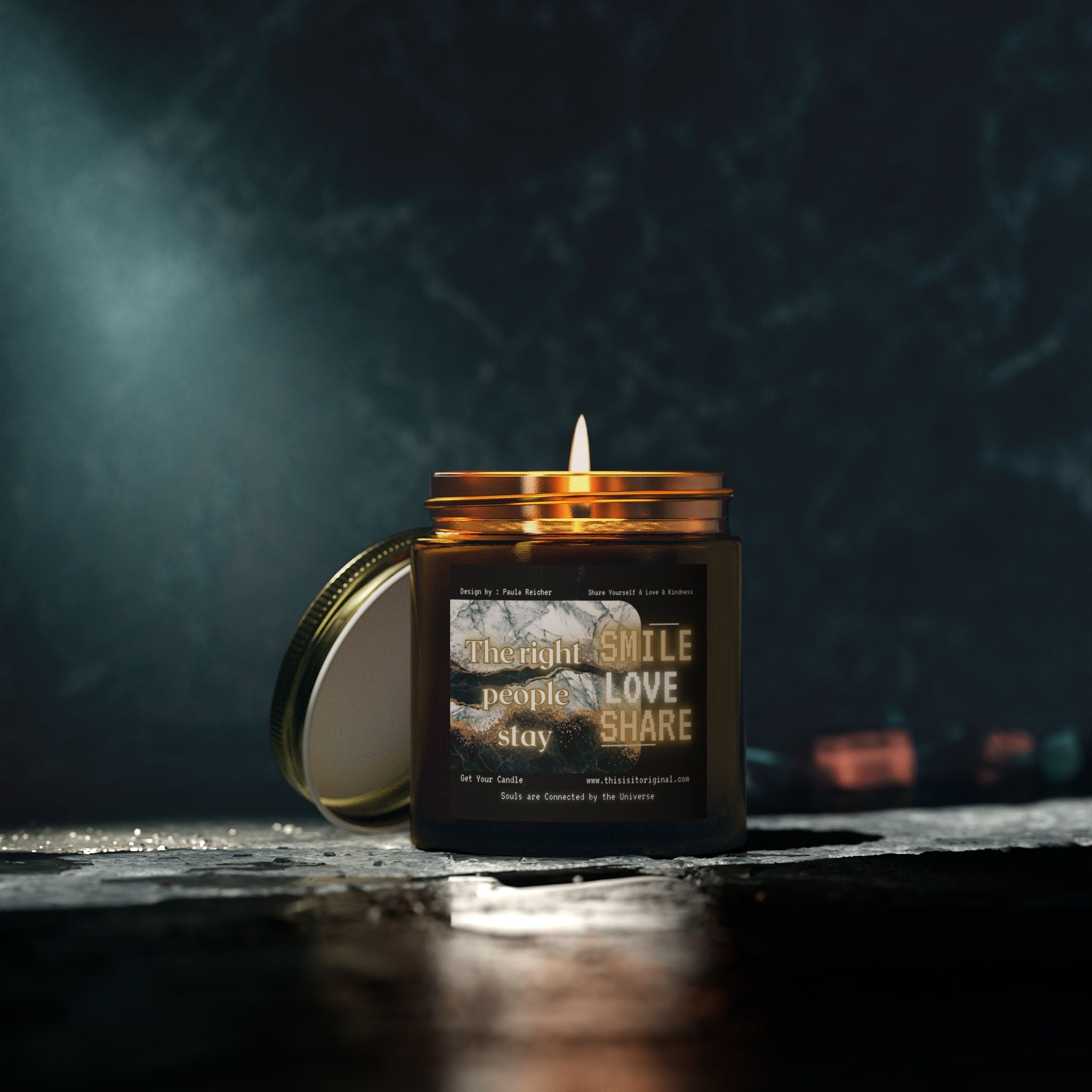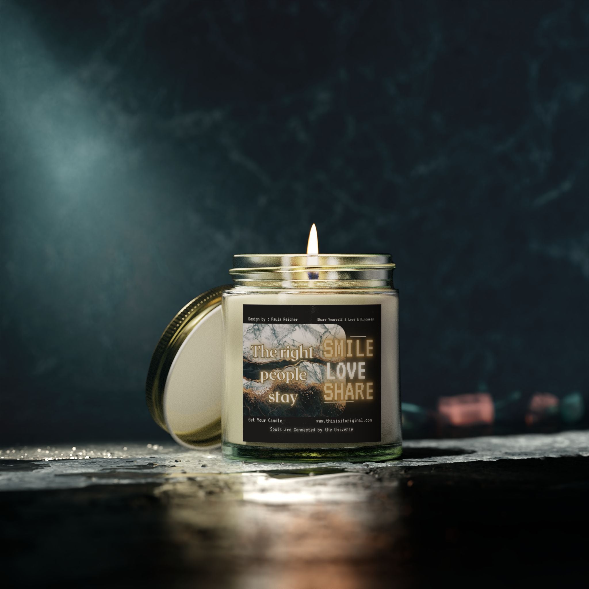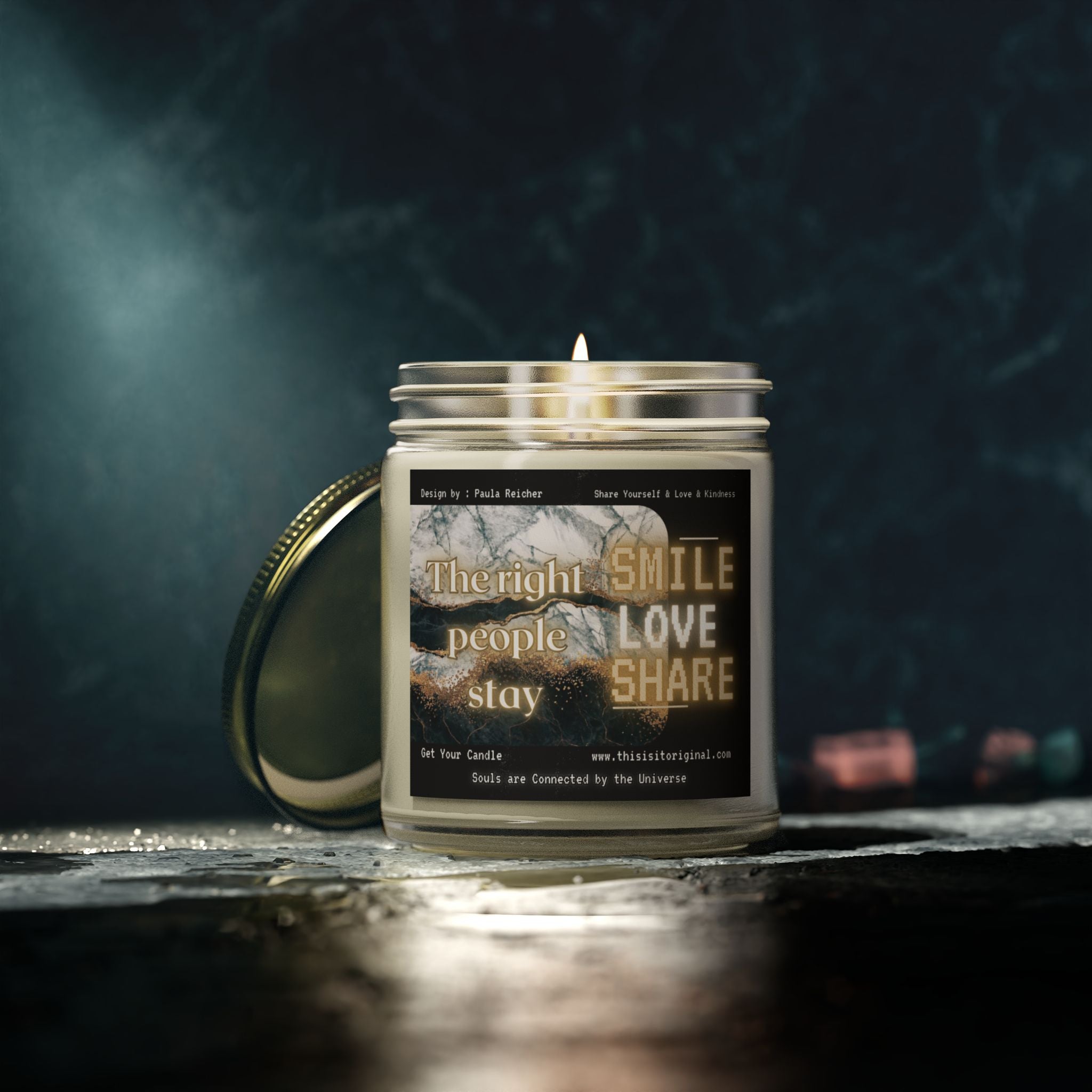 Eco-friendly scented candles made with Coconut Apricot Wax in the USA. The right people stay. Perfect for creating a cozy and inviting atmosphere at home. Ideal for those who appreciate natural and non-toxic products. Relevant for holidays, celebrations, and everyday relaxation.