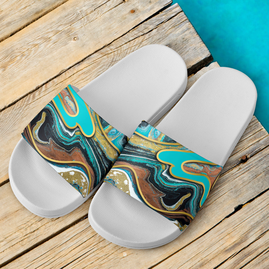 Luxury Light Blue Marble Design With Gold Stripes Slide Sandals