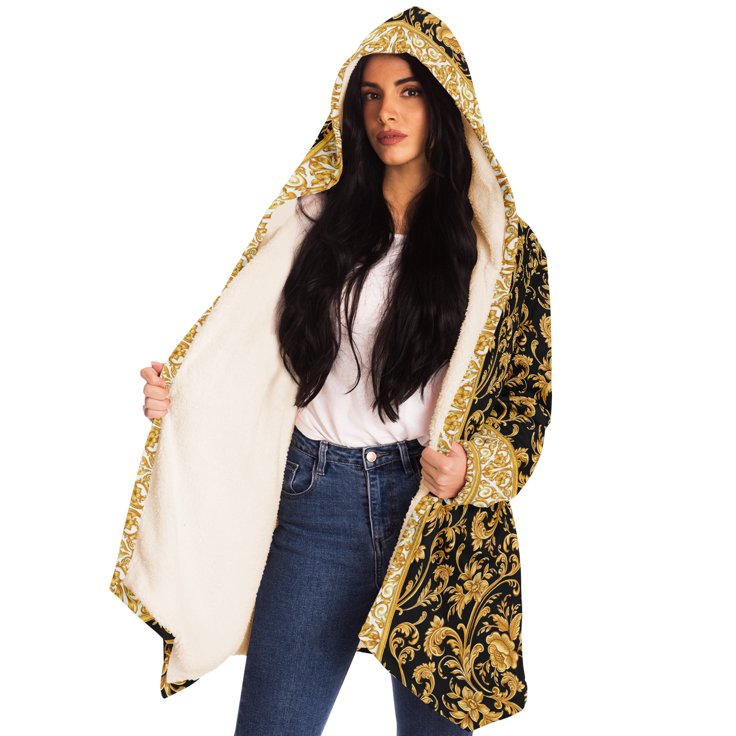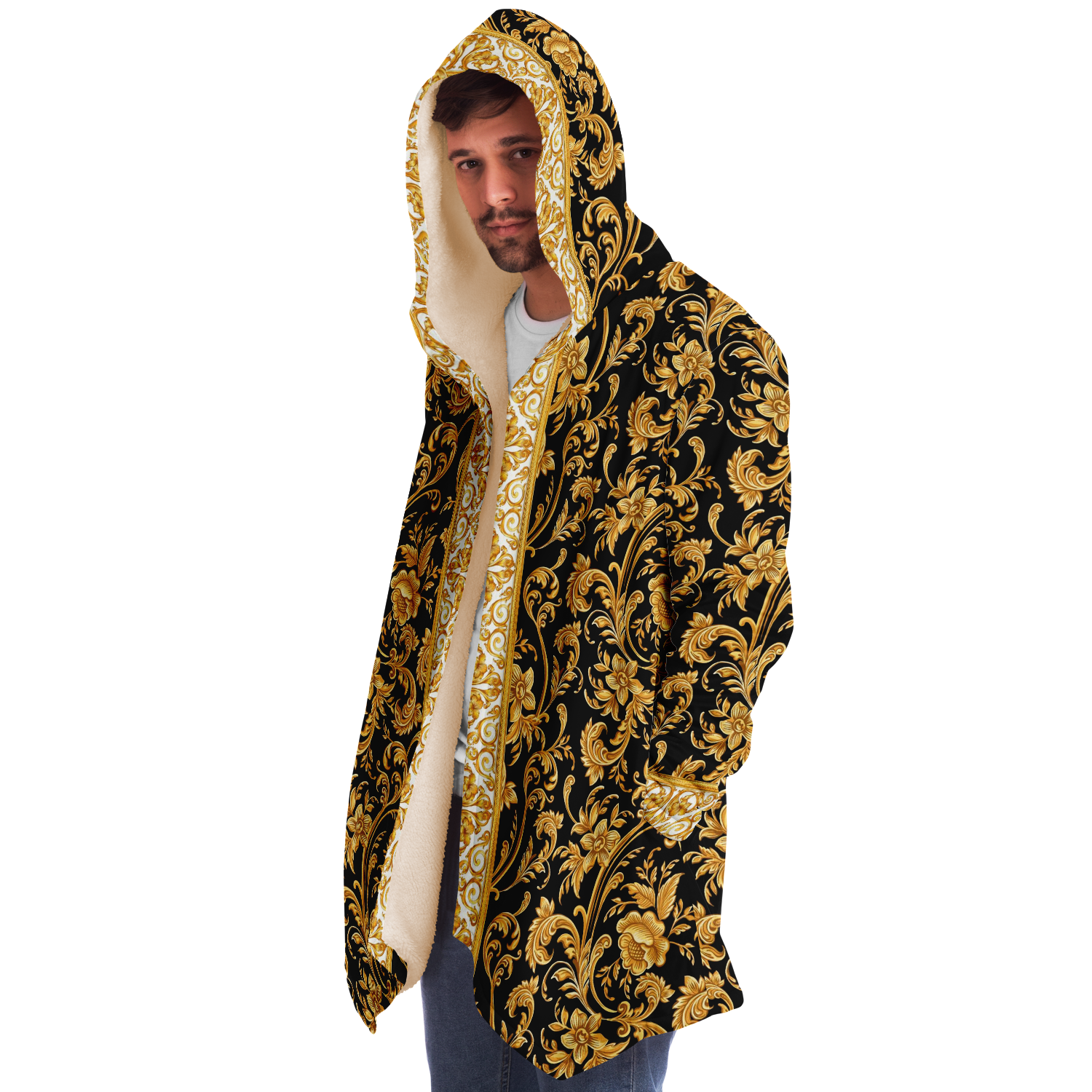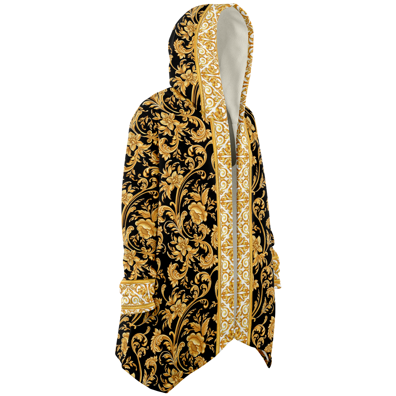This luxurious cloak is made from an ultra-soft premium microfiber fleece lining. The outside is made with a micro-mink polyester fabric that allows the print to be high definition with vibrant colors. Featuring two deep side pockets to keep your belongings safe and your hands warm.
