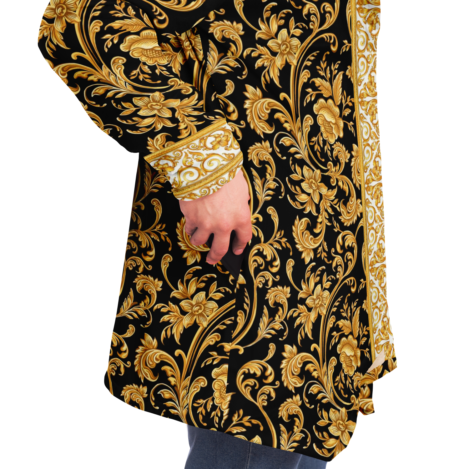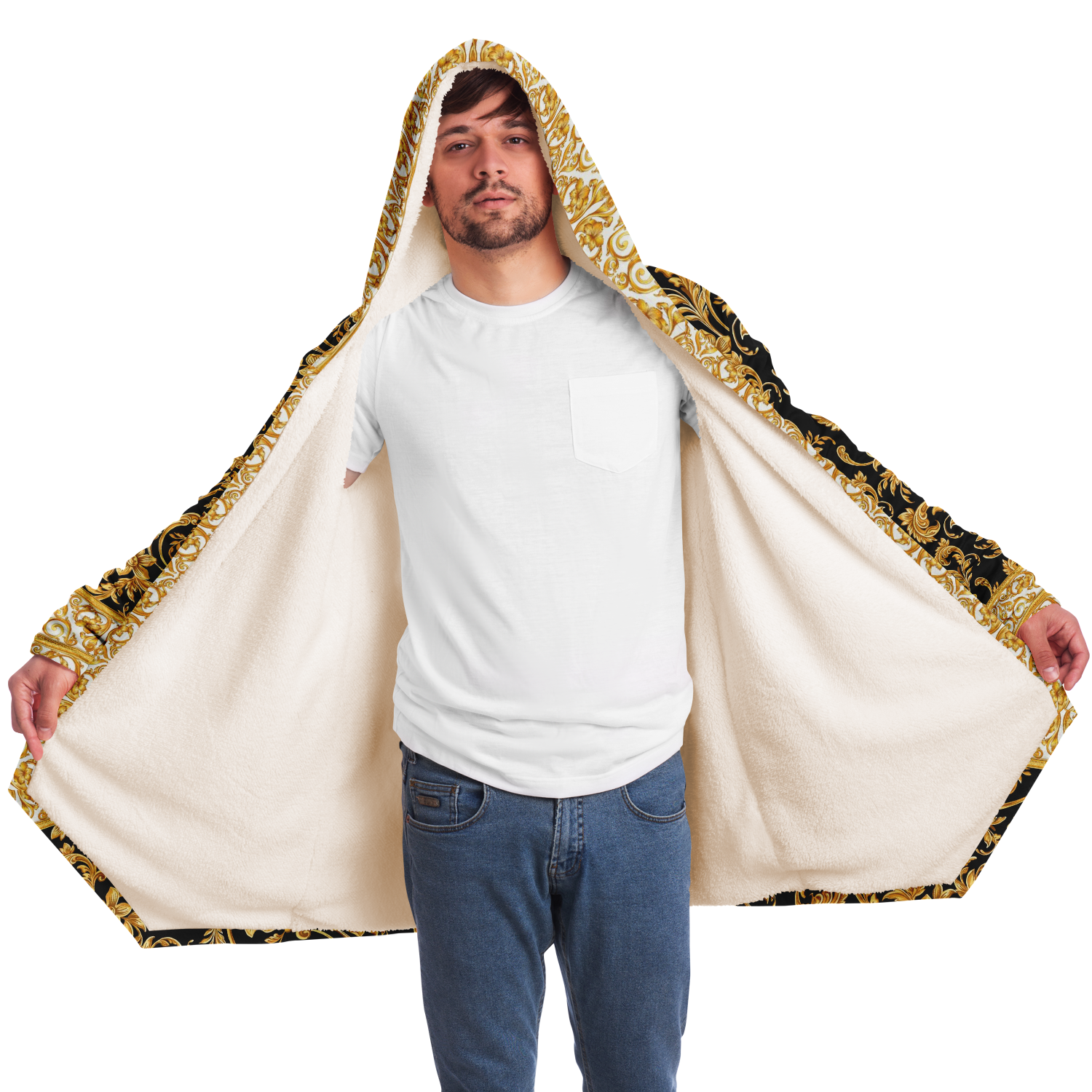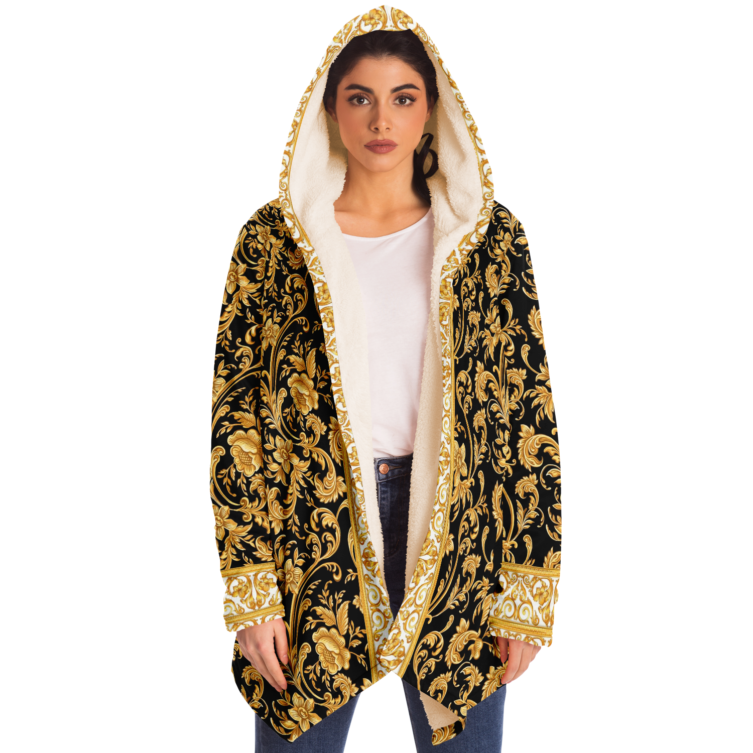 This luxurious cloak is made from an ultra-soft premium microfiber fleece lining. The outside is made with a micro-mink polyester fabric that allows the print to be high definition with vibrant colors. Featuring two deep side pockets to keep your belongings safe and your hands warm.