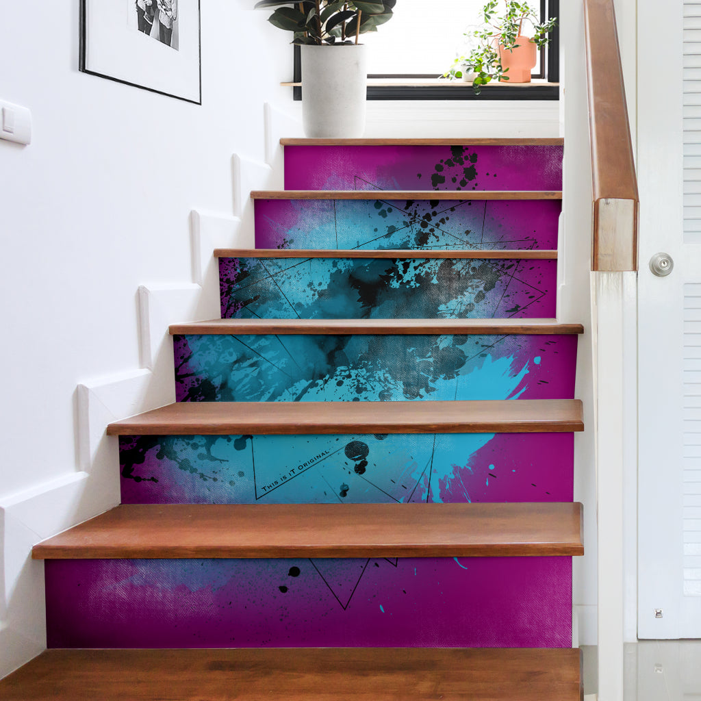 Purple Fresh Street Art Design Stair Stickers (Set of 6)