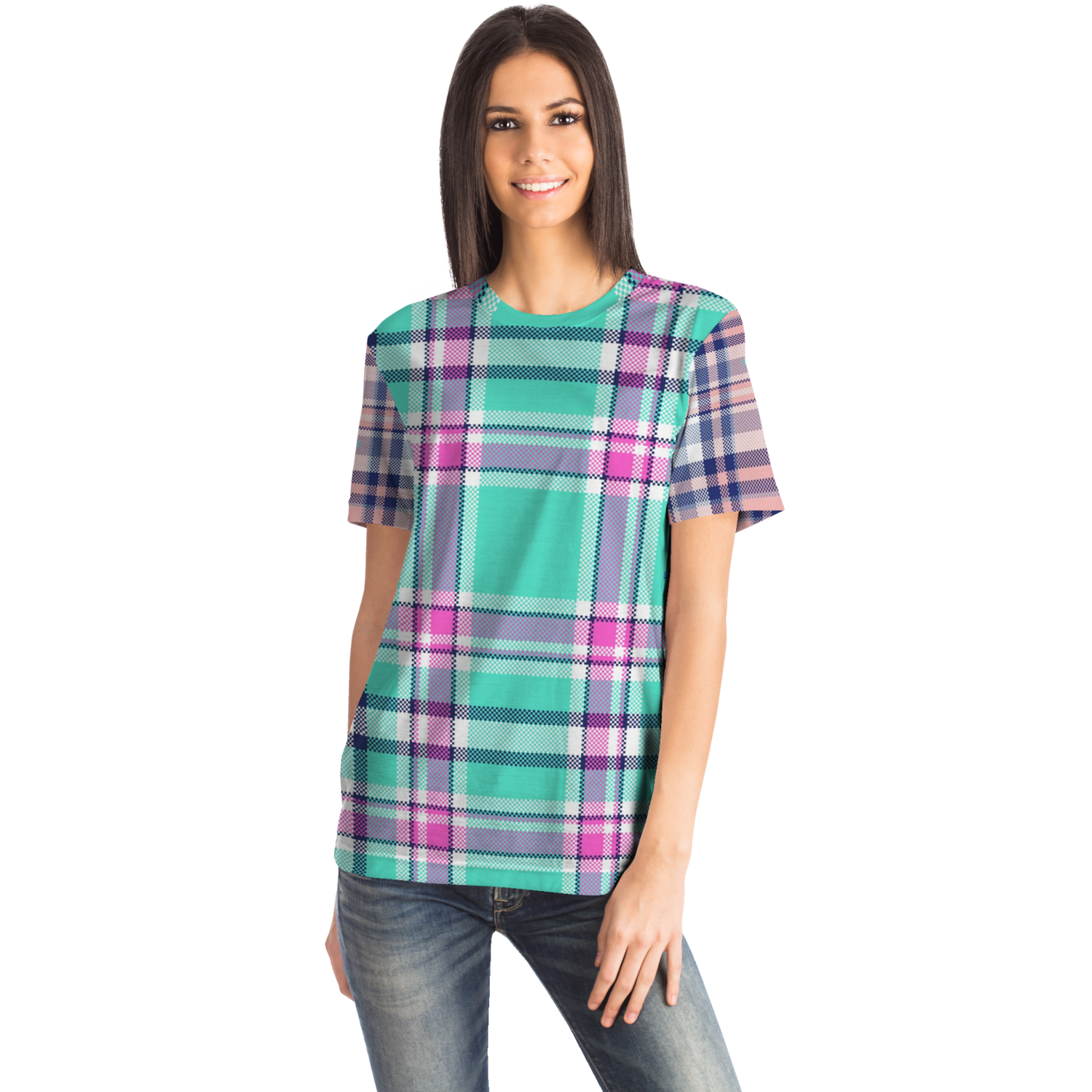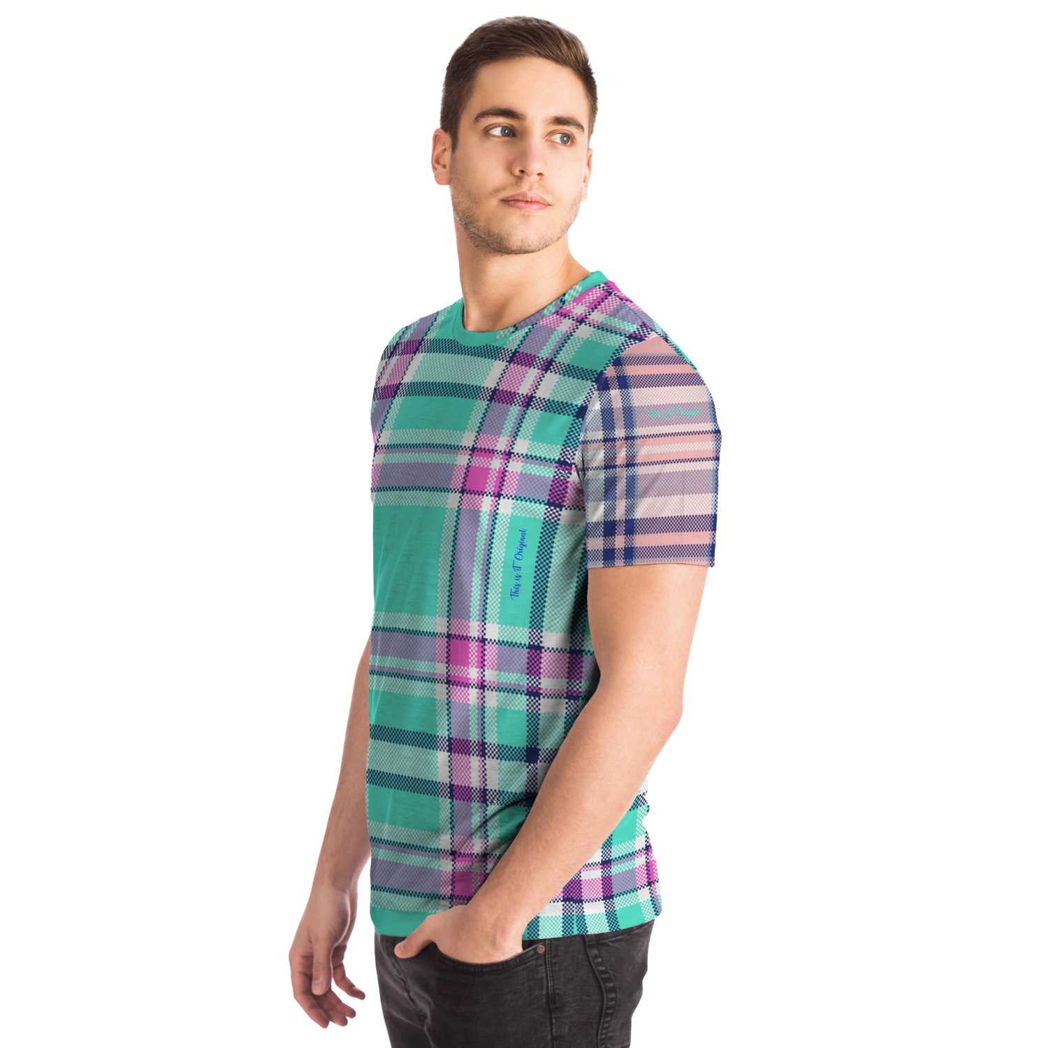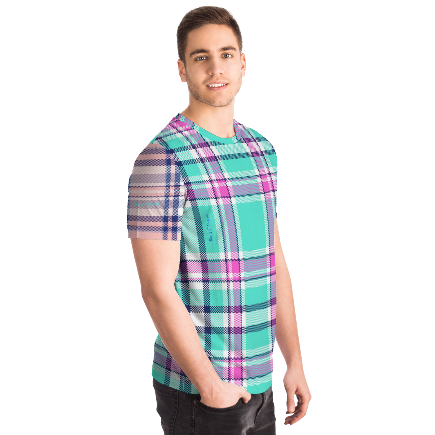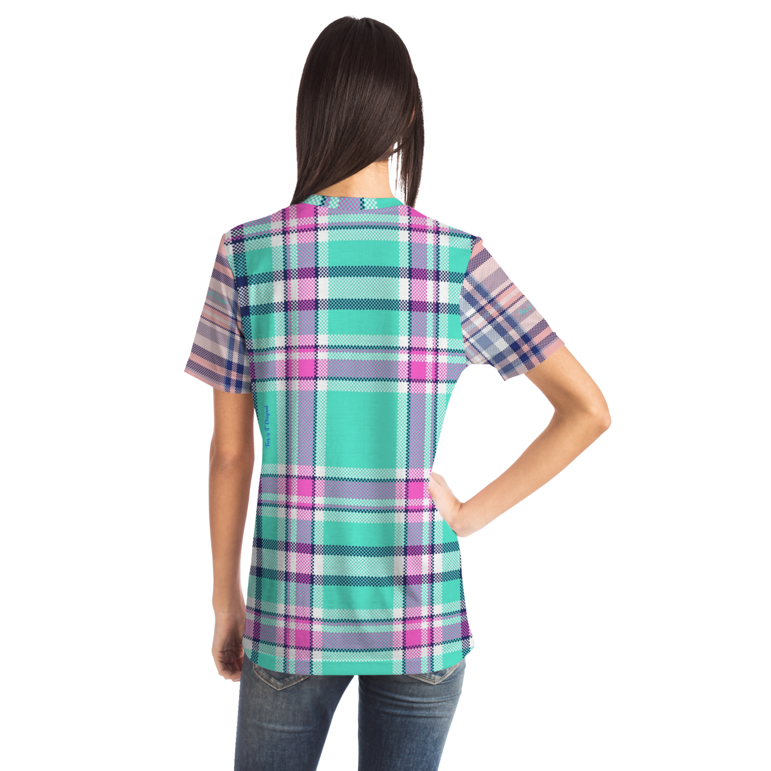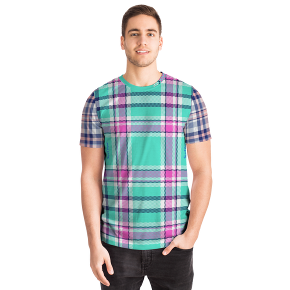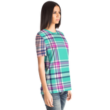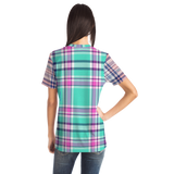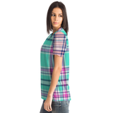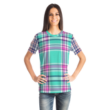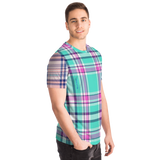 Perfect Tartan Luxury Design Light Blue And Pink Street Wear T-shirt