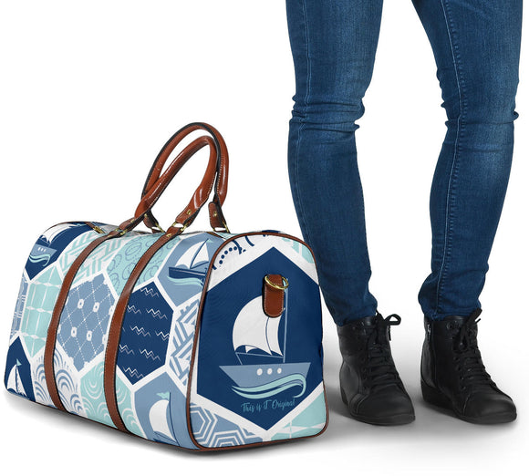 Special Gold & Blue Navy Hexagon Design - Sailing Boat - Travel Bag
