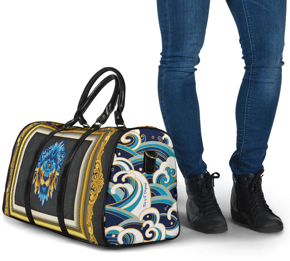 Luxury Japan Wave X Blue Lion in Gold Frame Design Travel Bag
