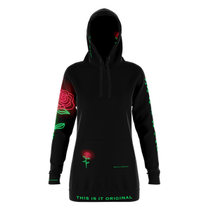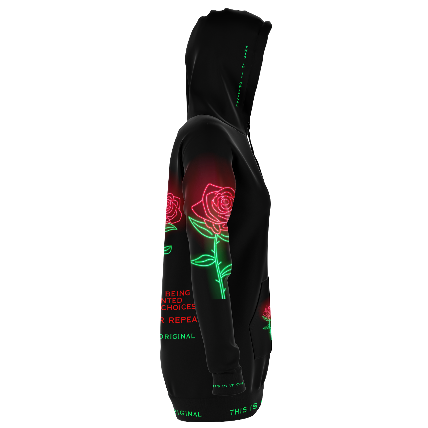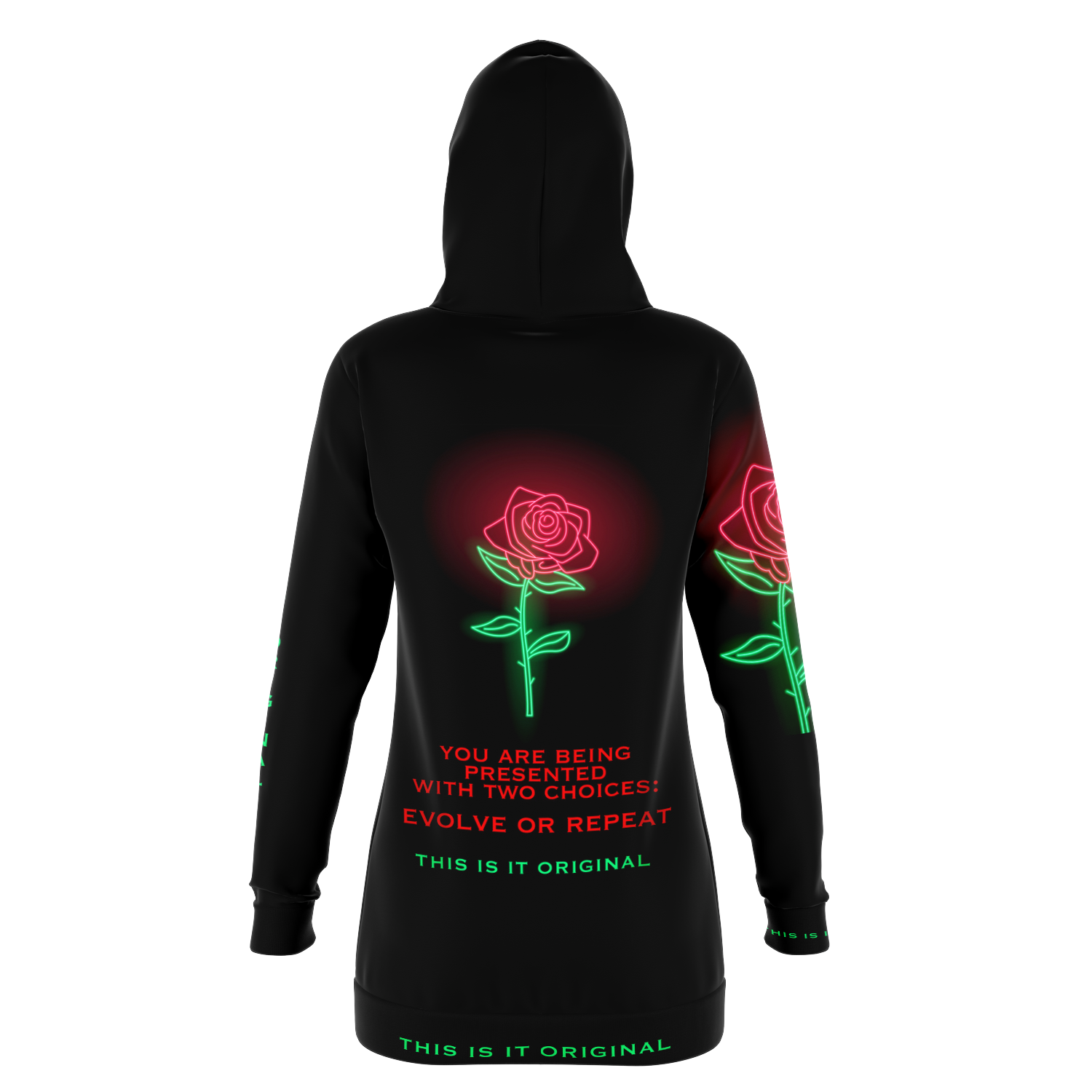 Black & Neon Rose Design Evolve or Repeat Style Women's Hoodie Dress