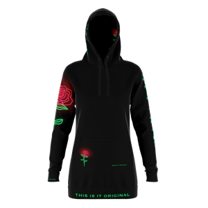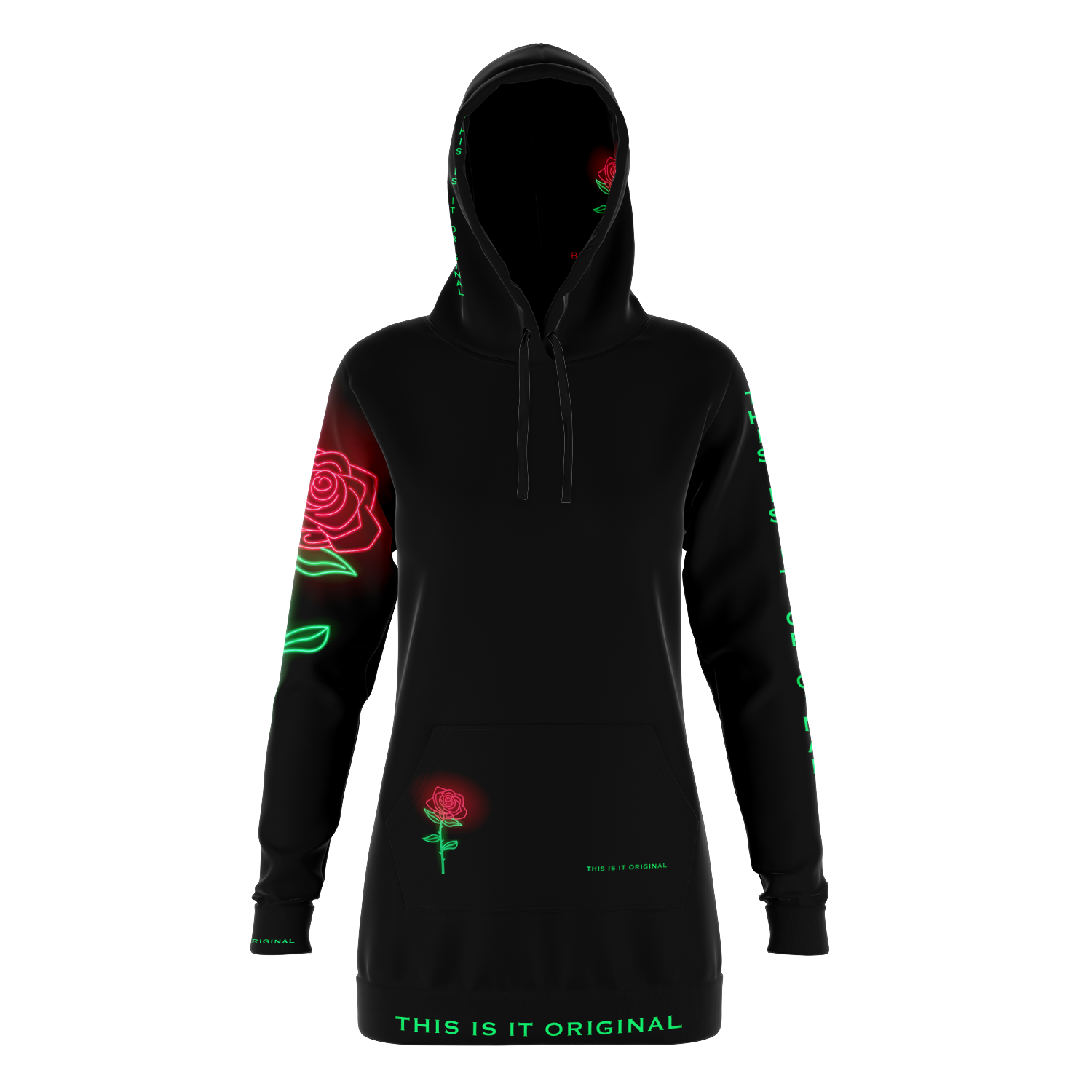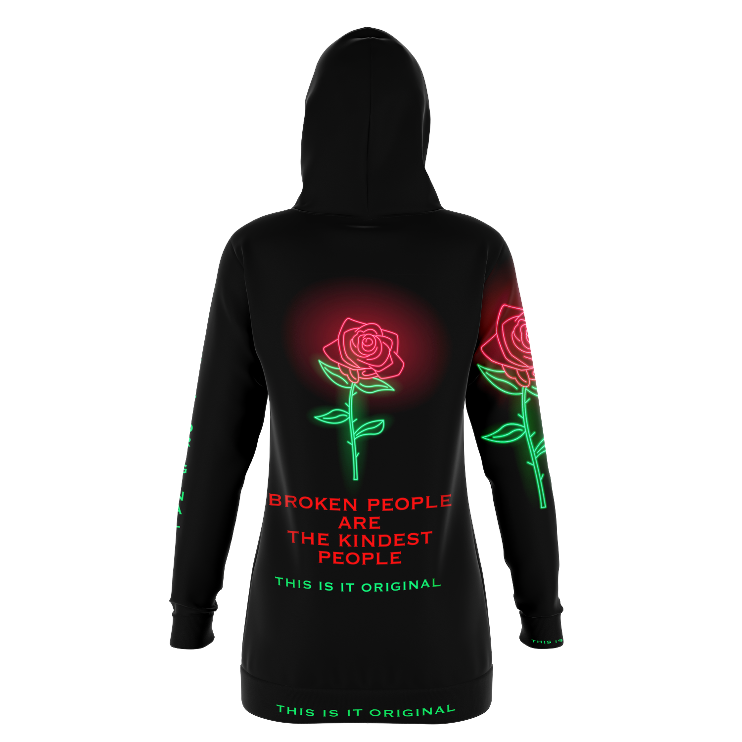 Black & Neon Rose Design The Kindest People Style Women's Hoodie Dress