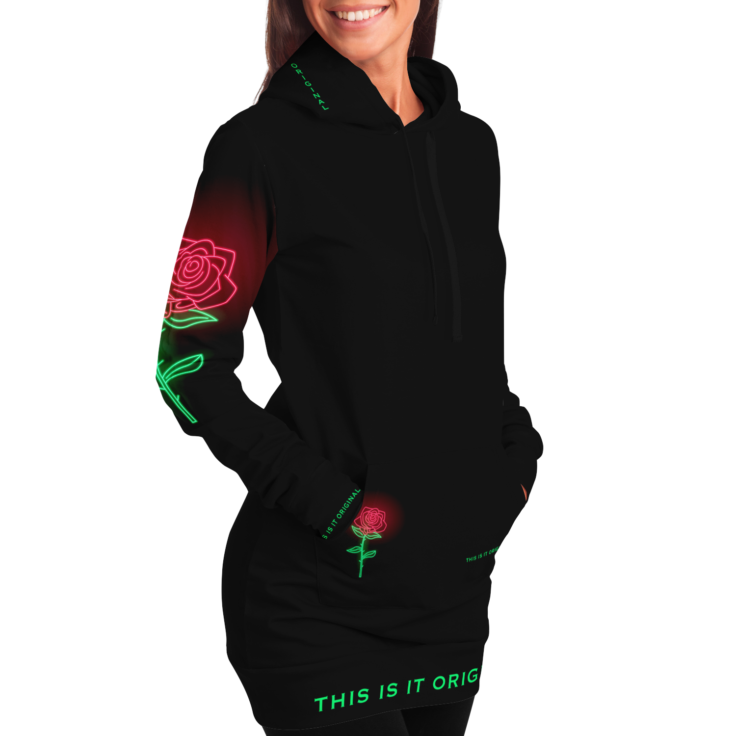 Black & Neon Rose Design Evolve or Repeat Style Women's Hoodie Dress