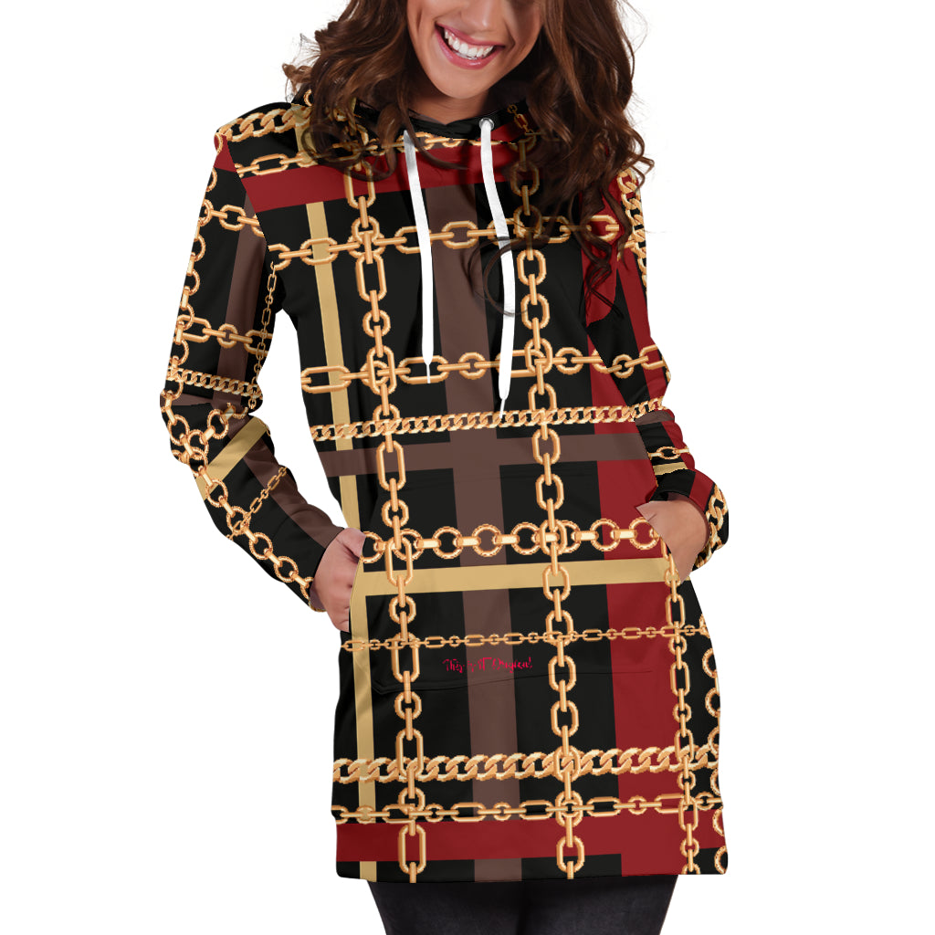 Dark Style Gold Chains Design Women's Hoodie Dress
