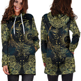 Golden Sun And Moon Women's Hoodie Dress