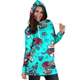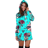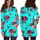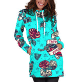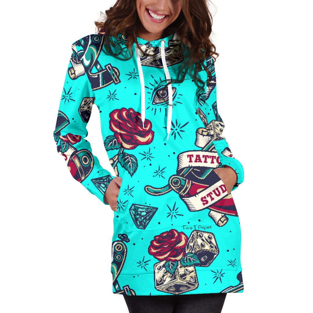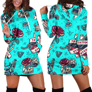 Lovely Light Blue Tattoo Studio Design Women's Hoodie Dress