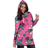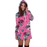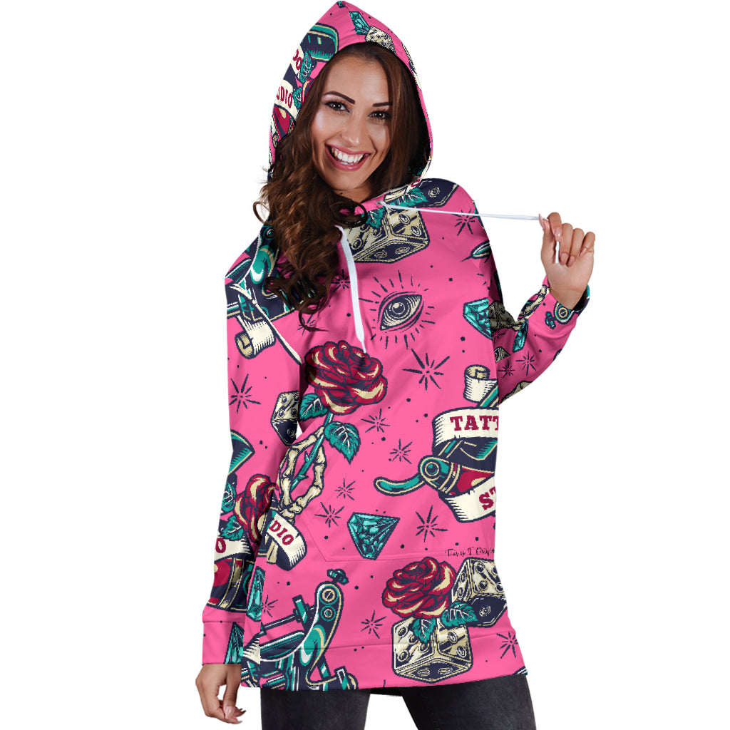 Lovely Pink Tattoo Studio Design Women's Hoodie Dress
