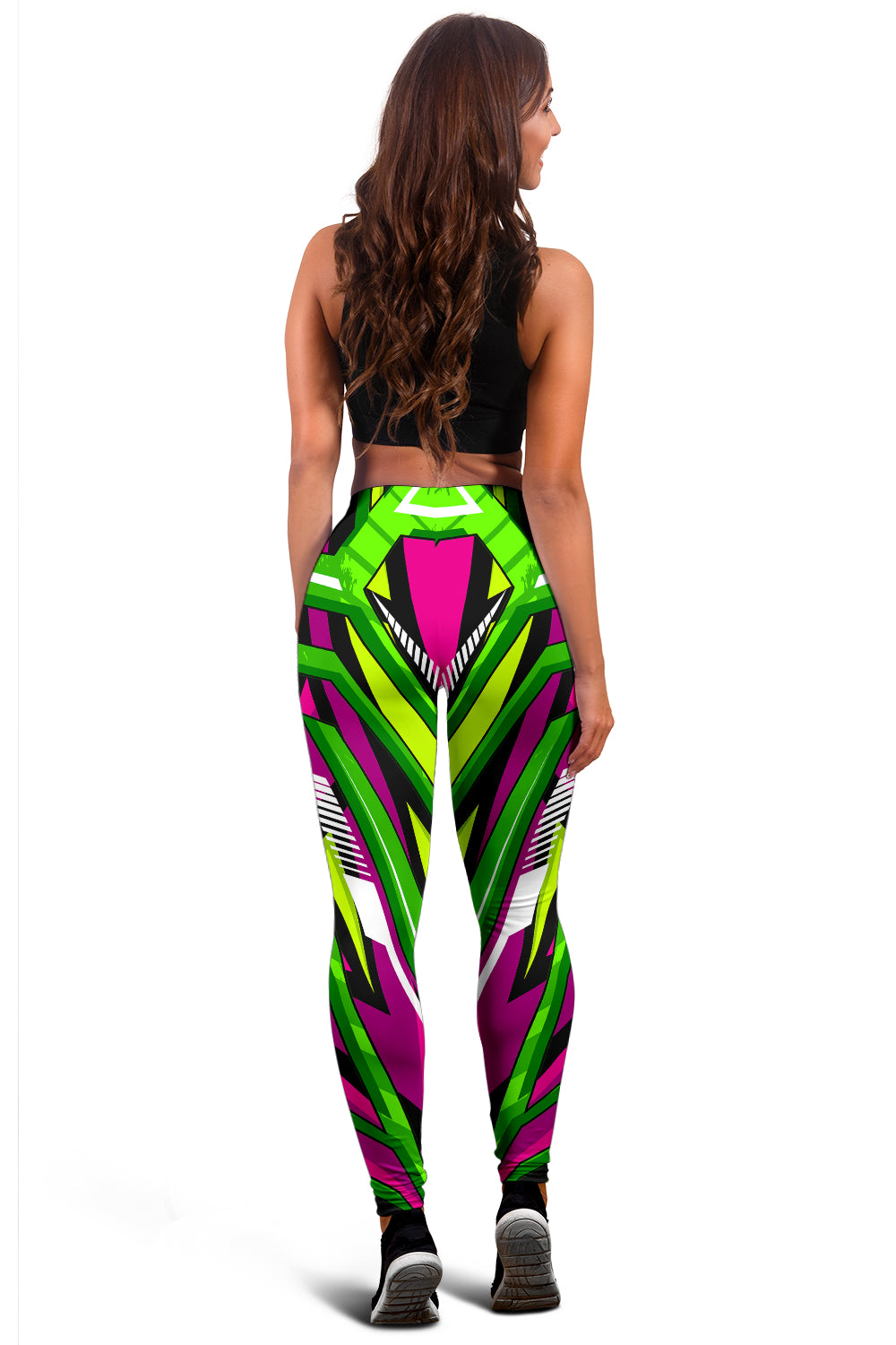 Racing Style Neon Green & Pink Vibes Women's Leggings