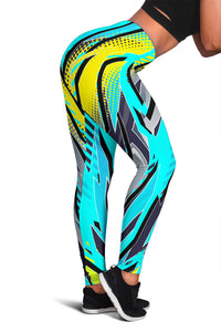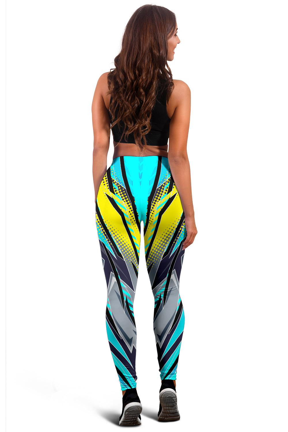 Racing Style Ocean Blue & Yellow & Grey Colorful Vibe Women's Leggings