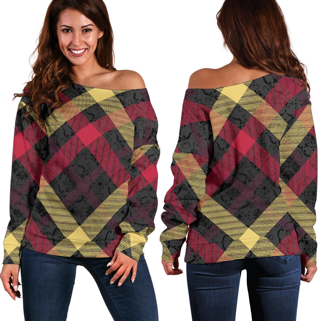 Exclusive Tartan Women's Off Shoulder Sweater