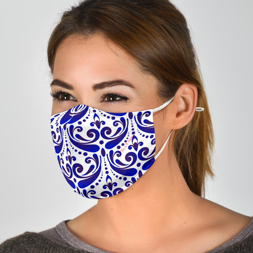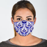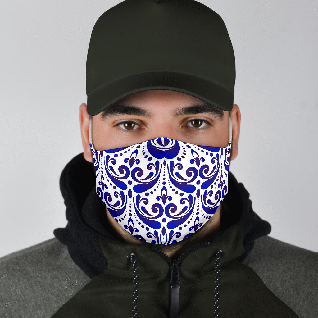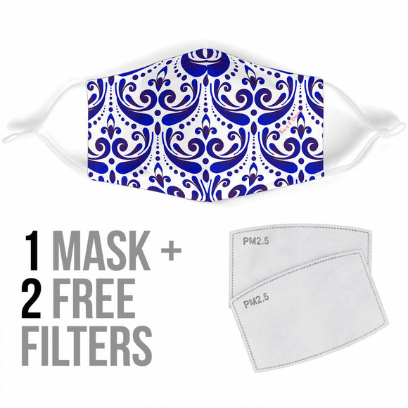 Amazing Traditional Design White & Blue Ornaments Three Protection Face Mask