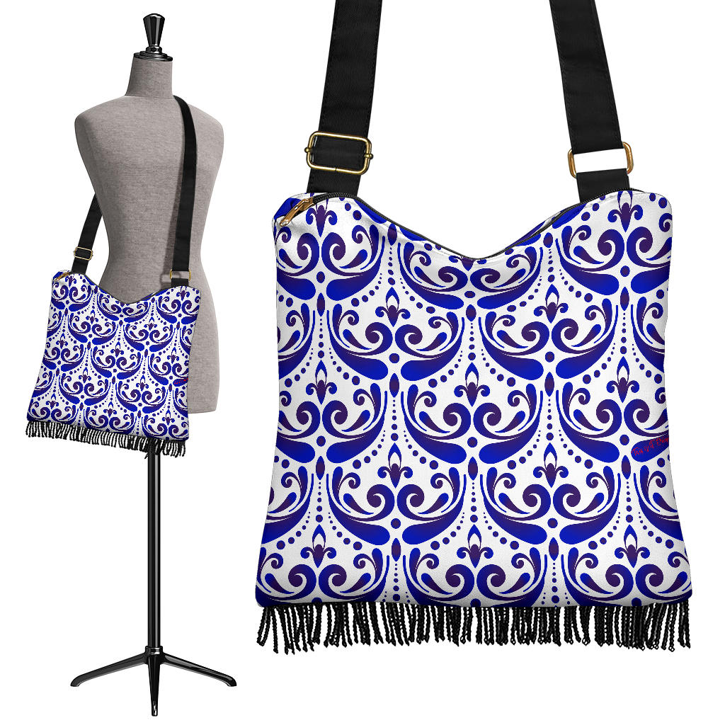 Amazing Traditional White & Blue Ornaments Vibes Four Crossbody Boho Handbag
