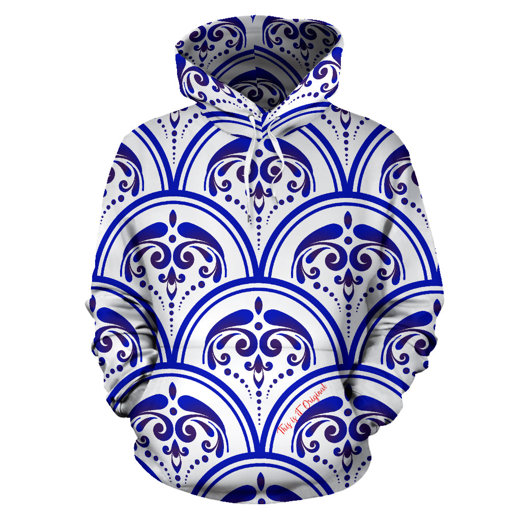 Amazing Traditional White & Blue Ornaments Vibes Two All Over Hoodie