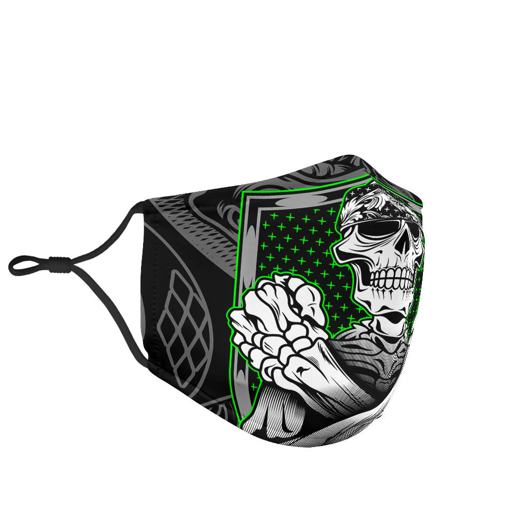 Bandana Style Black & Green Skull Design Protection Face Mask