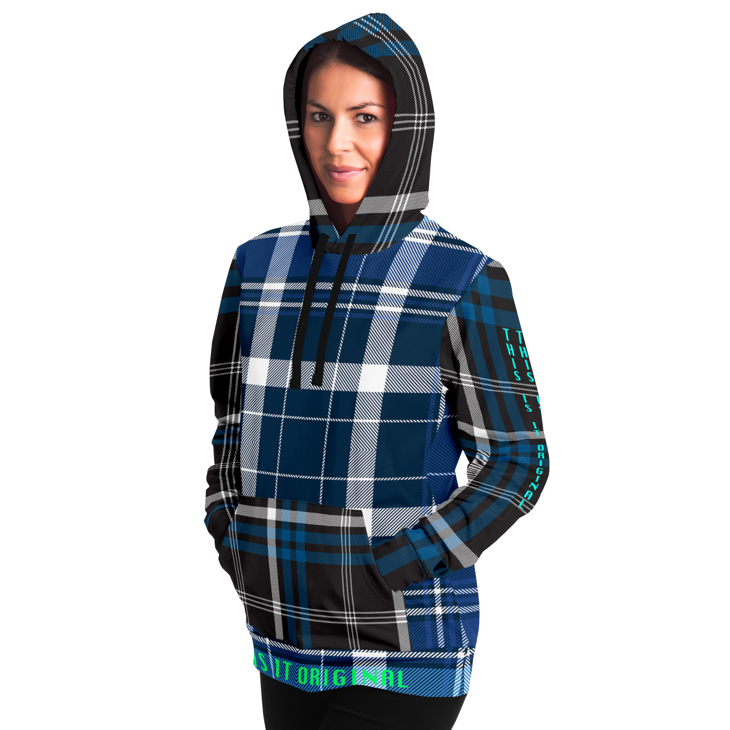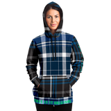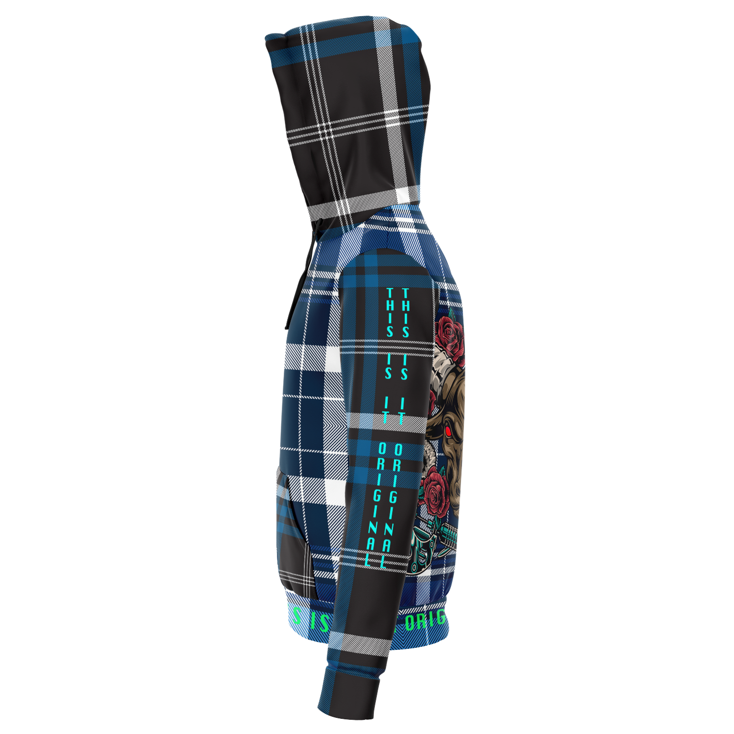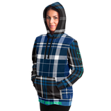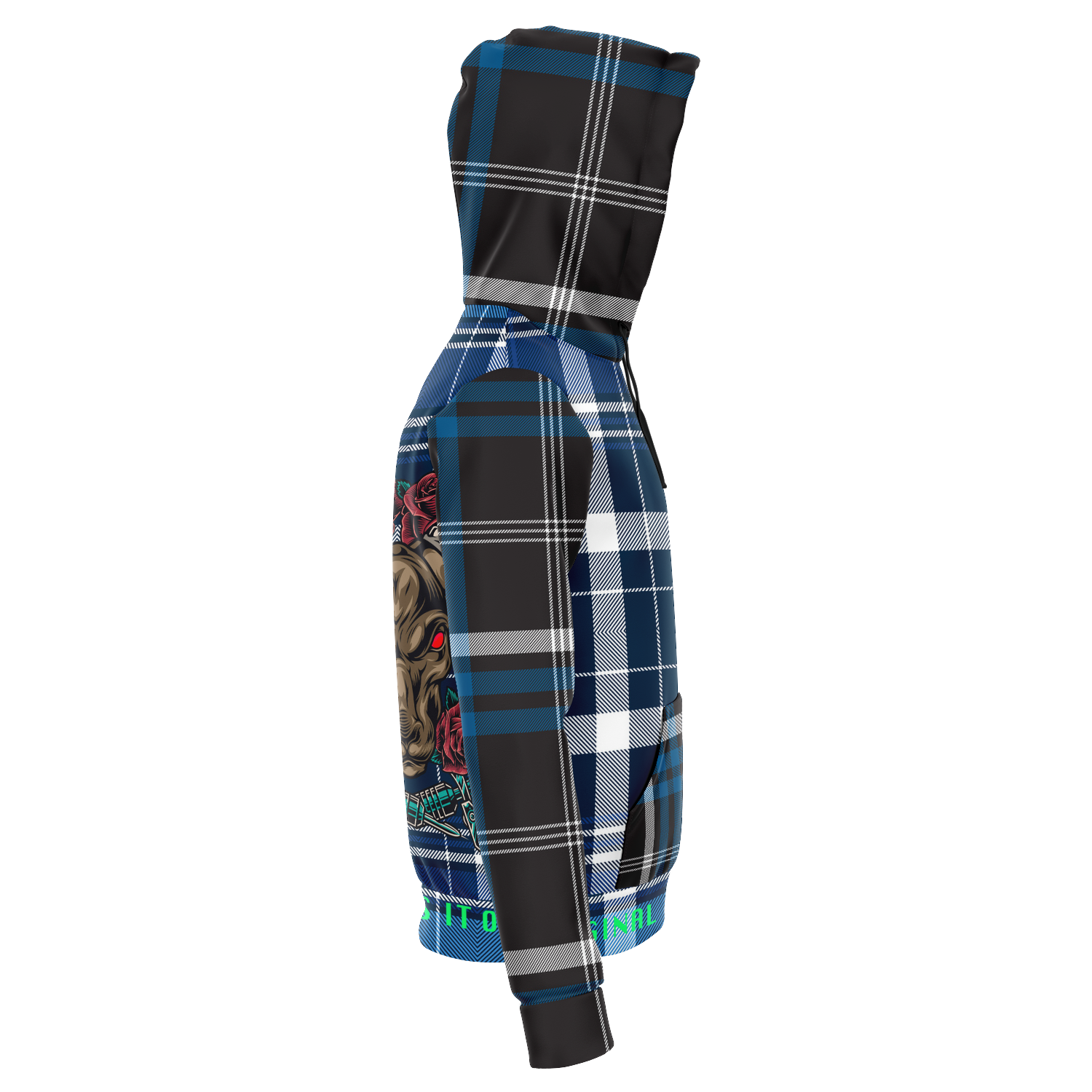 Black & Deep Blue Tartan Design with Ninja Angry Aries with Red Eyes Luxury Fashion Hoodie