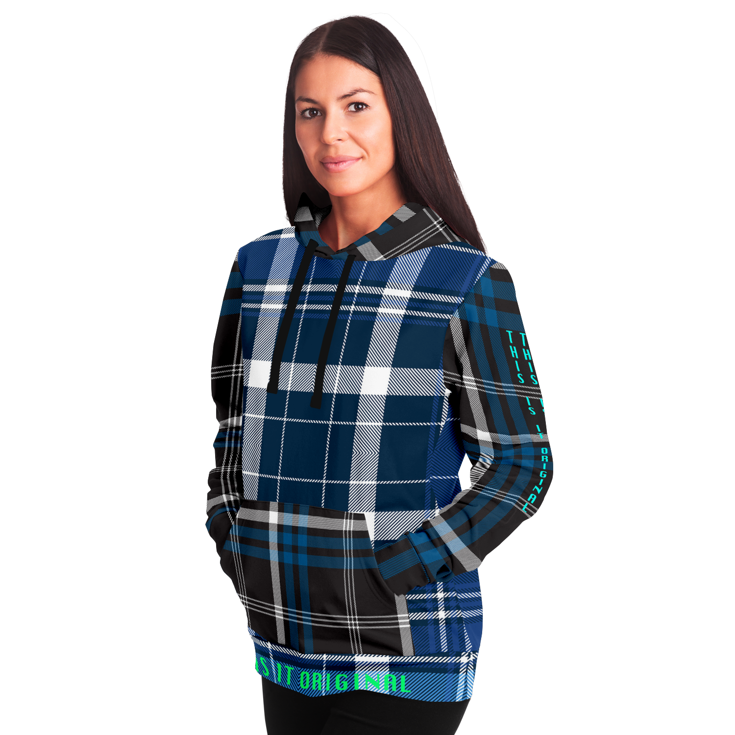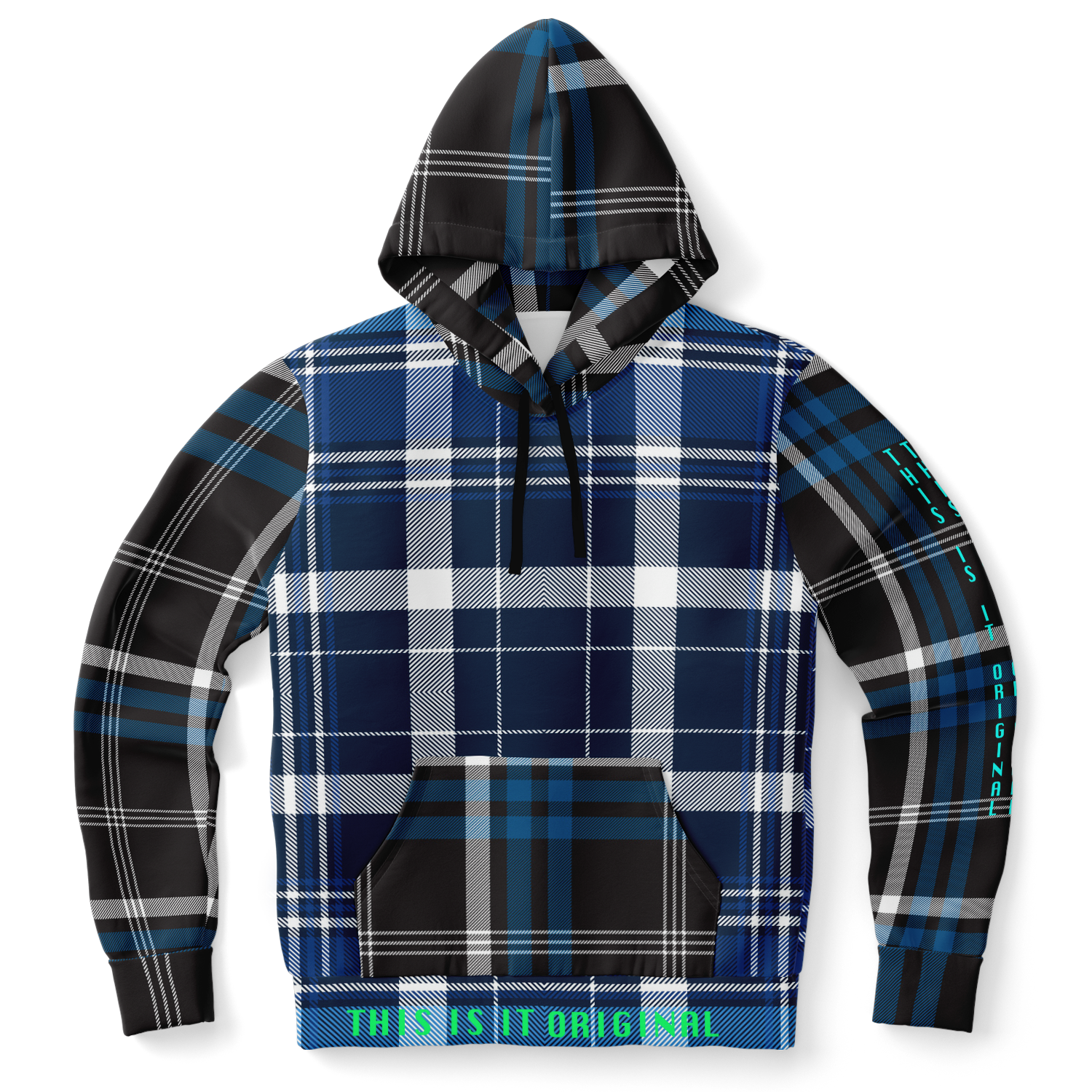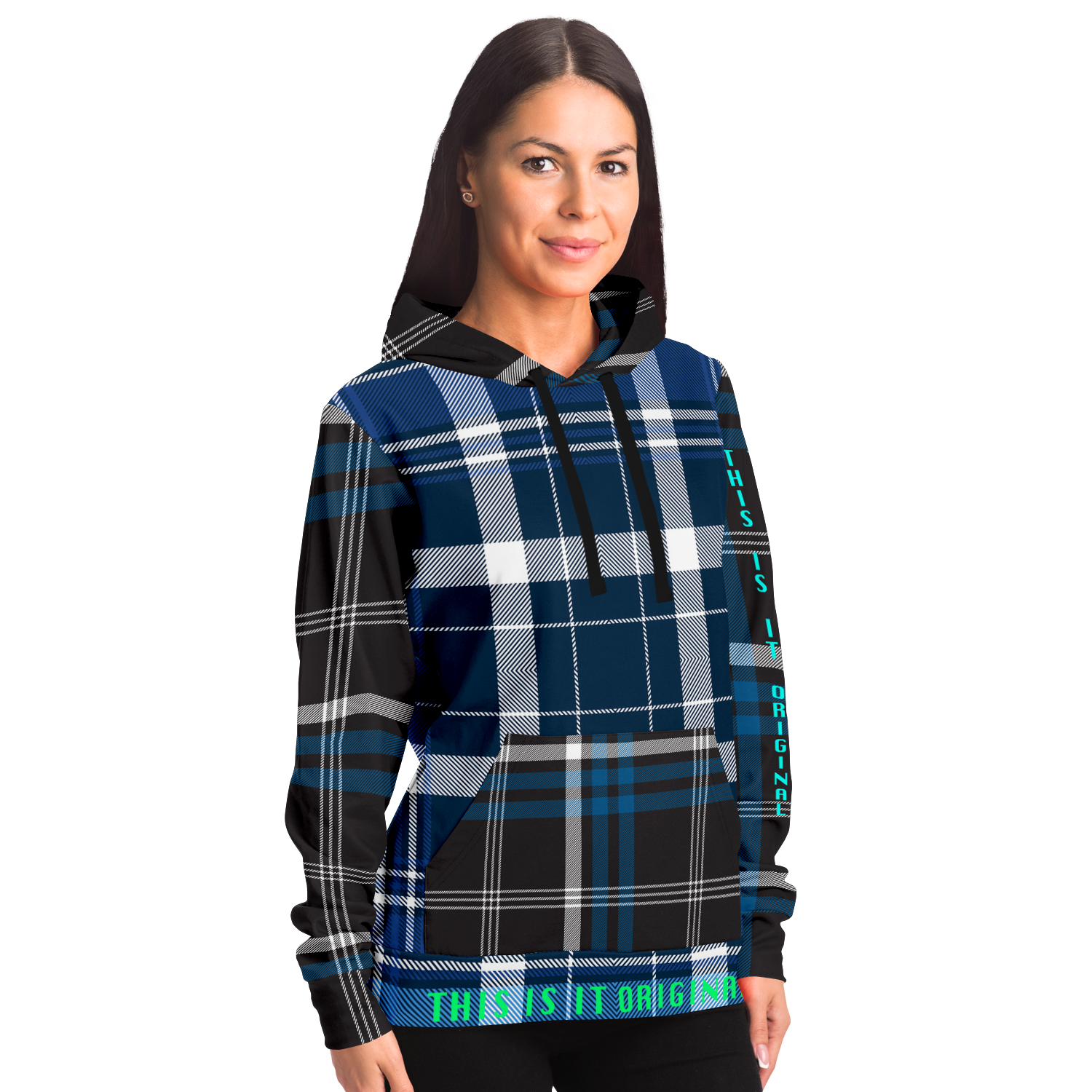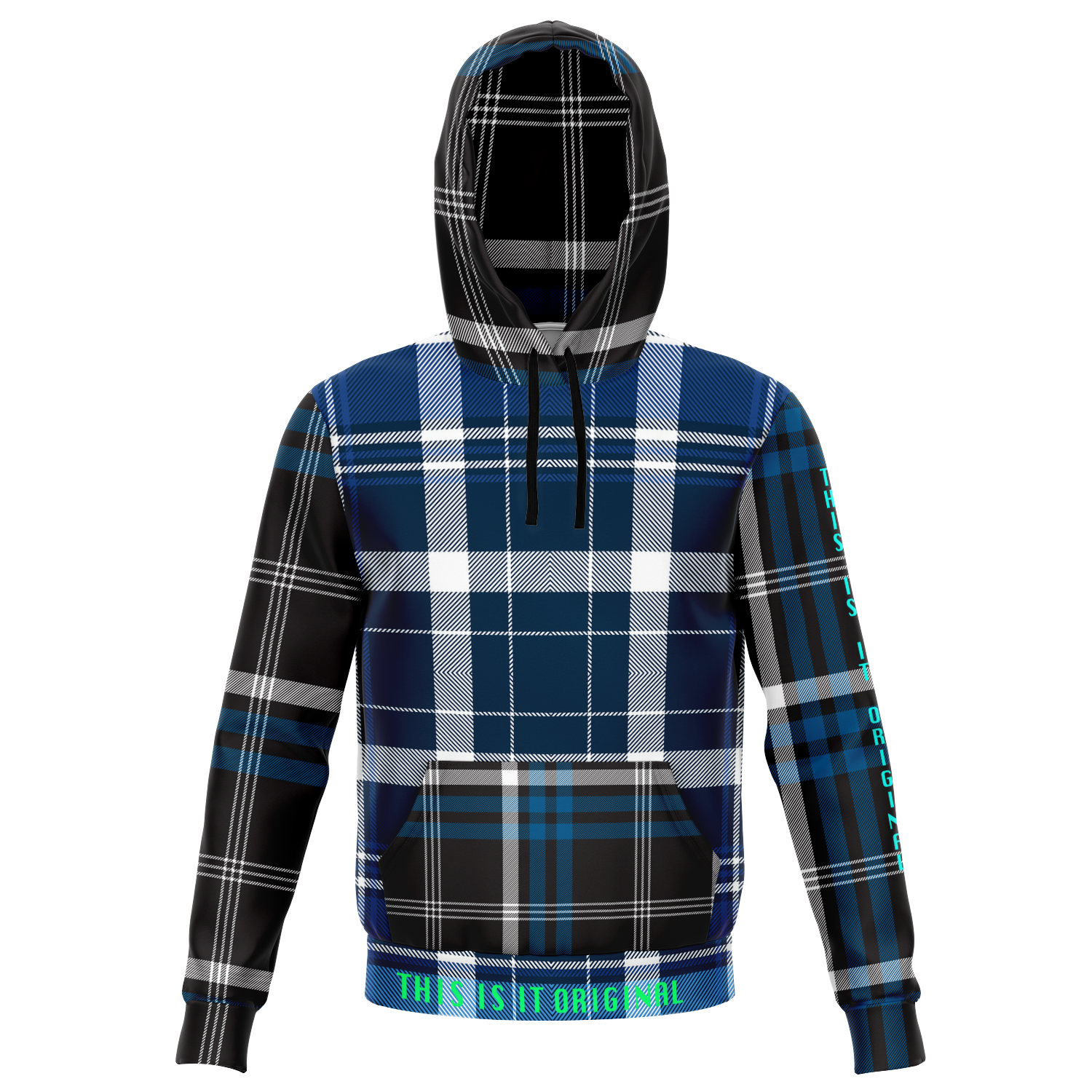Black & Deep Blue Tartan Design with Ninja Angry Aries with Red Eyes Luxury Fashion Hoodie