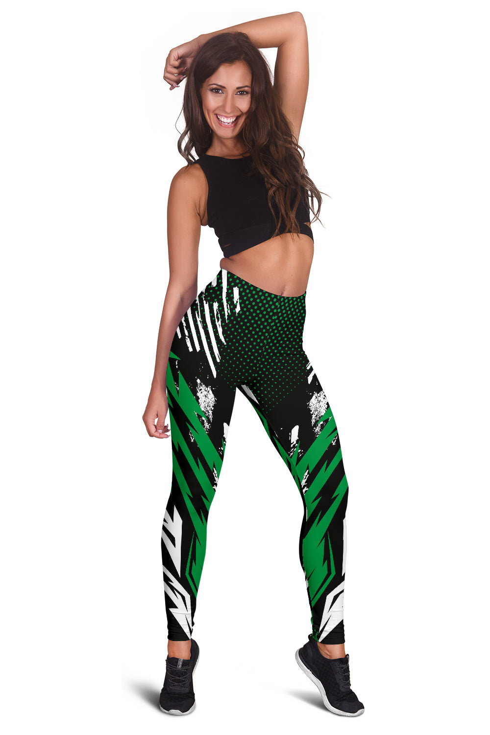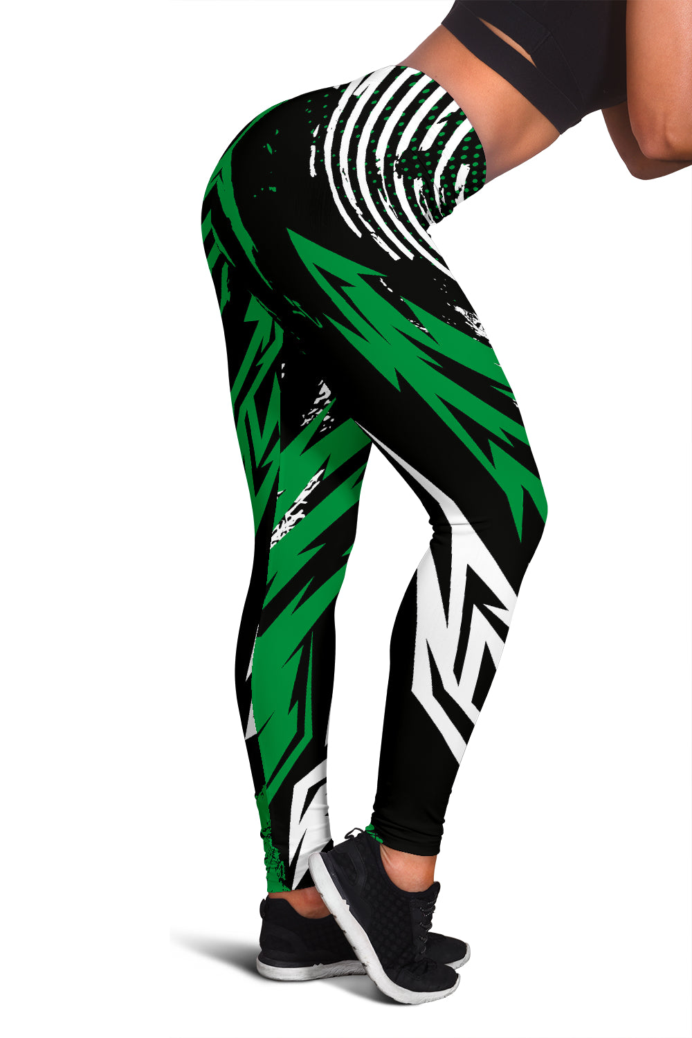 Black & Green Racing Style Women's Leggings