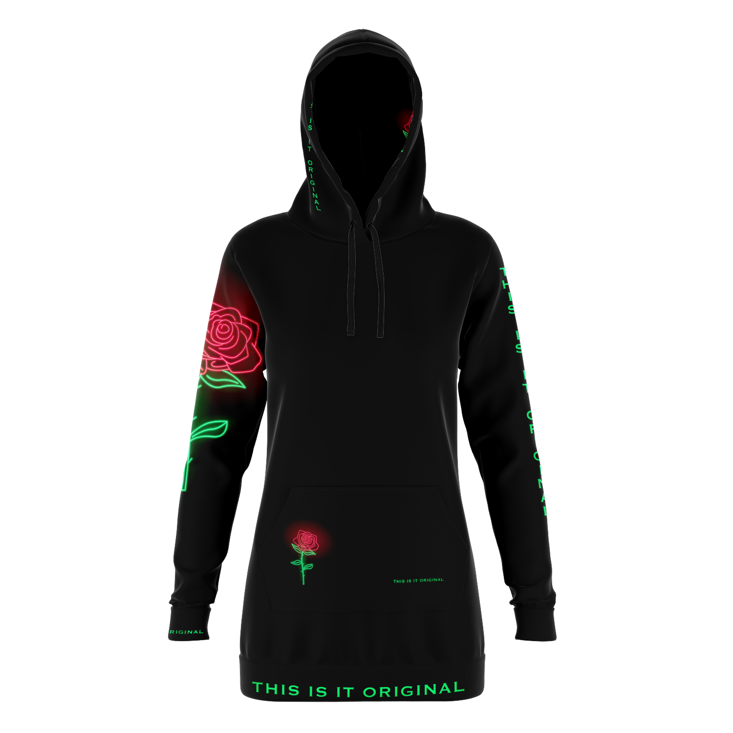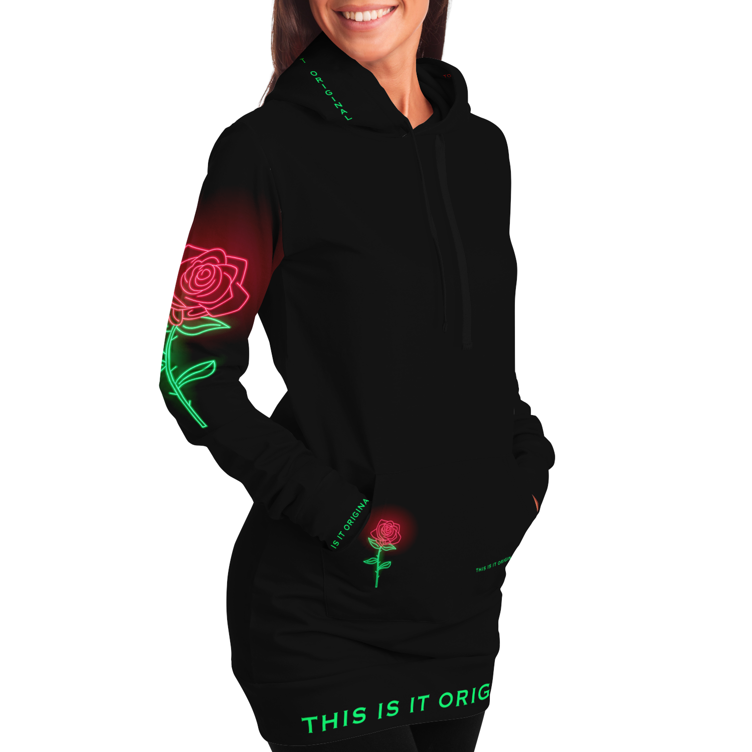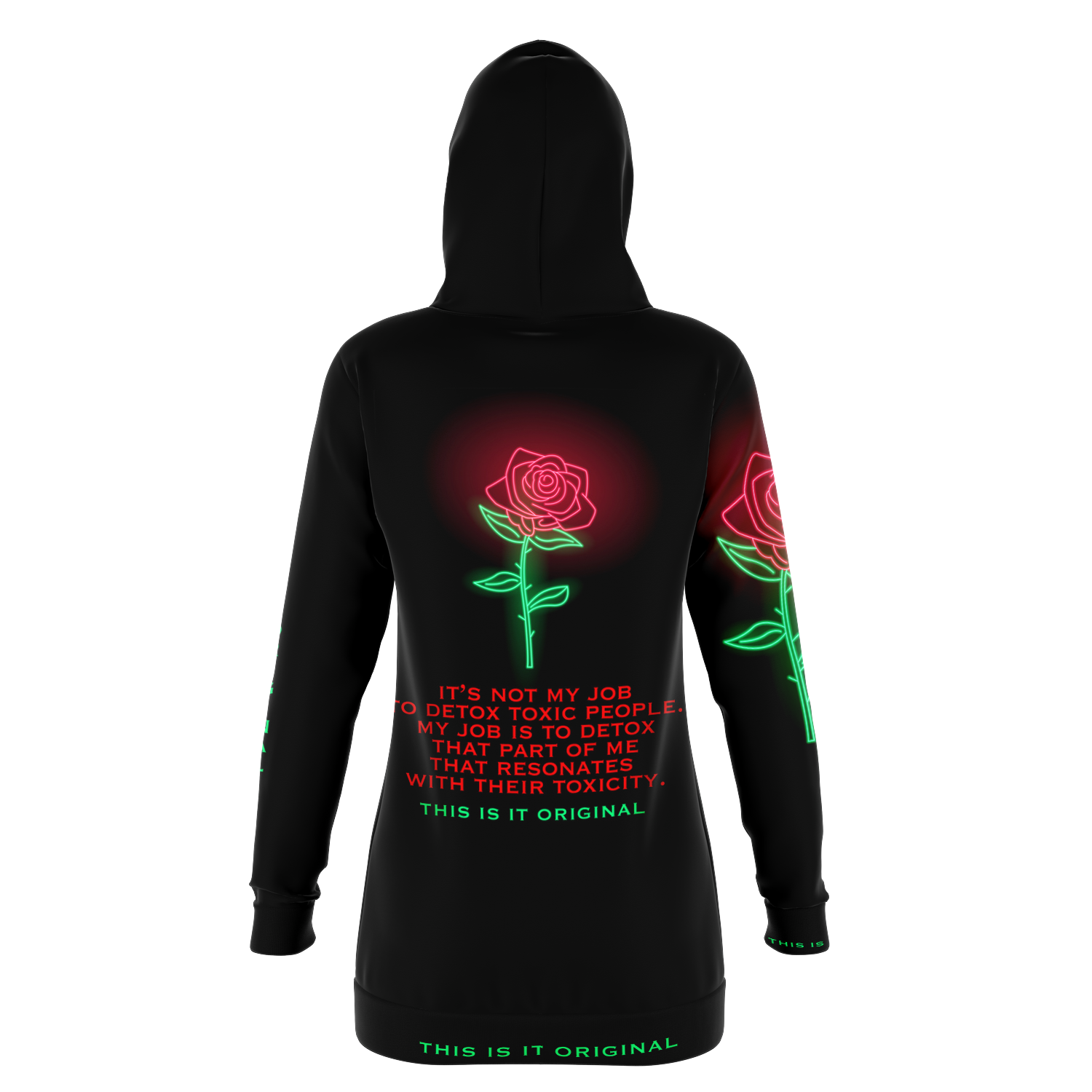Black & Neon Rose Design Toxic People Style Women's Hoodie Dress