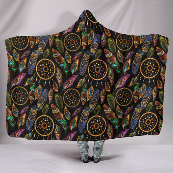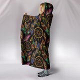 Boho Gold Tribal Dream Catcher Feathers Premium Hooded Blanket