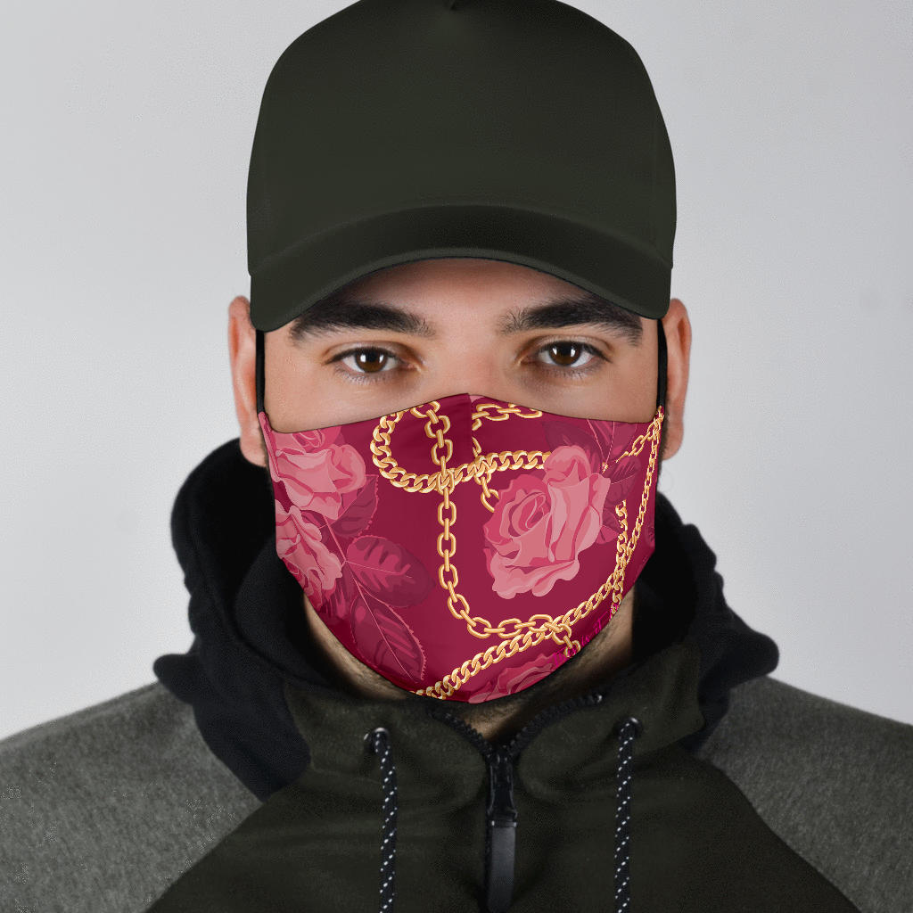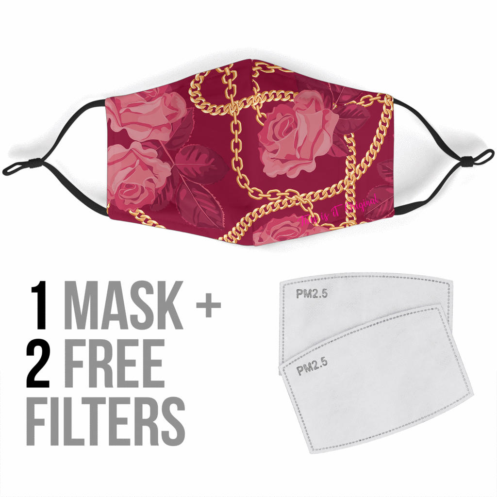Bordeaux Design With Pink Roses & Chains Protection Safe Mask