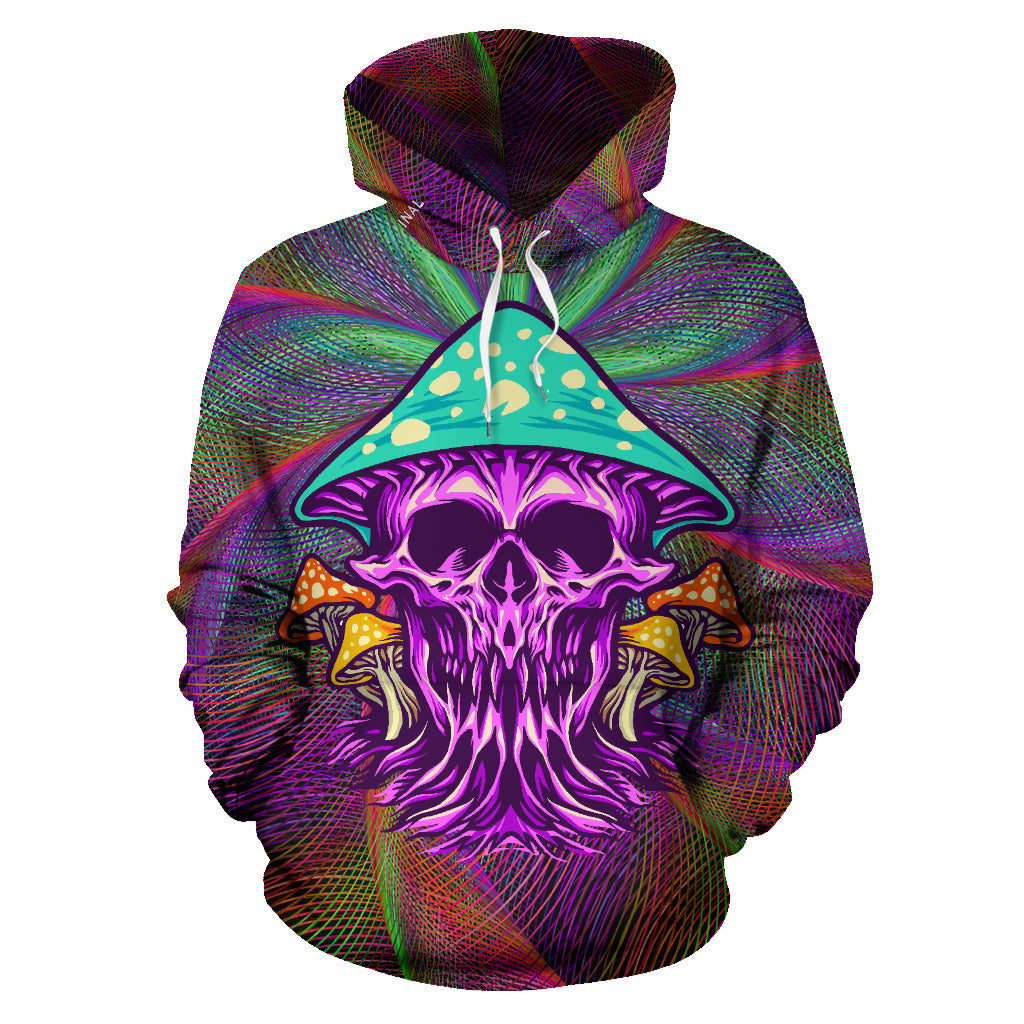 Colorful Psychedelic Design Skull with Mushrooms Three Hoodie